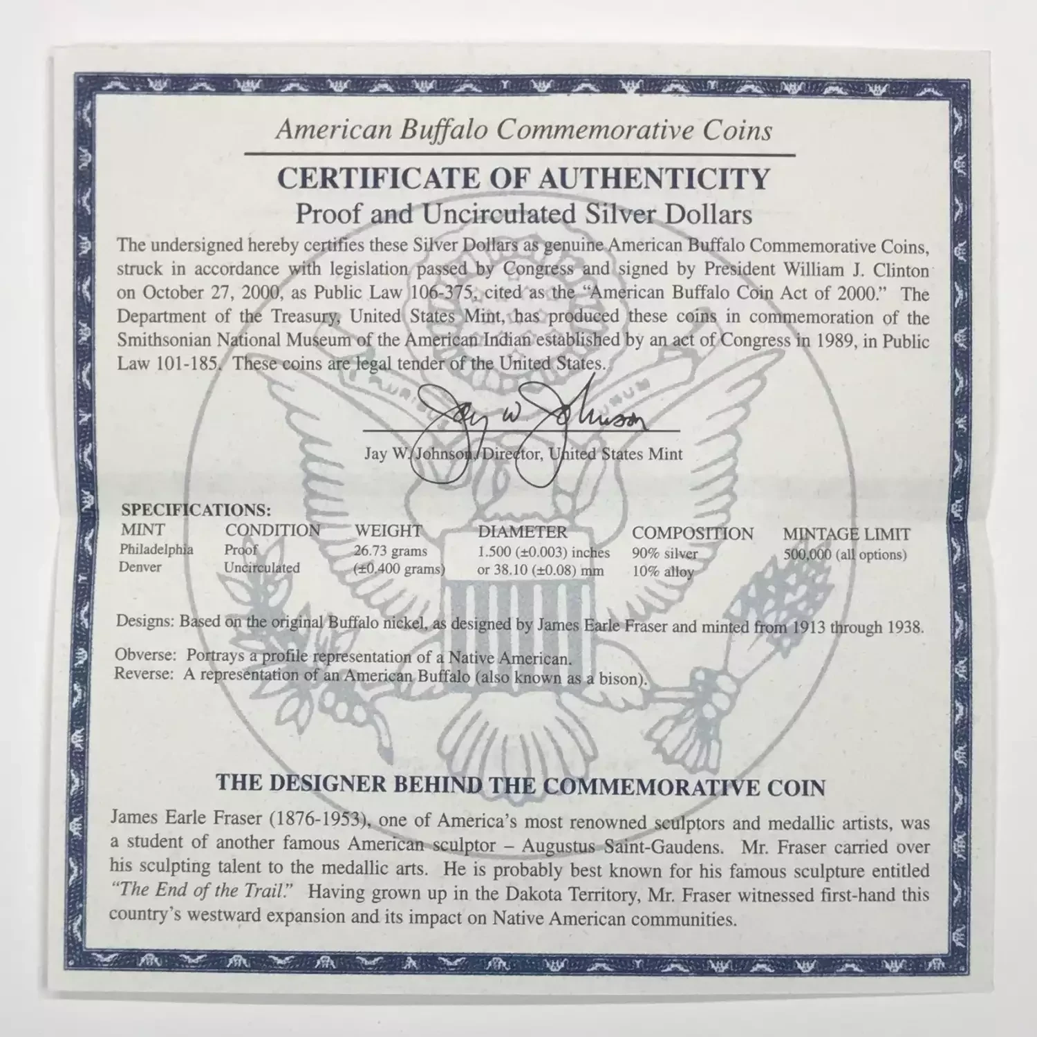 2001-D American Buffalo Commemorative Uncirculated Silver Dollar