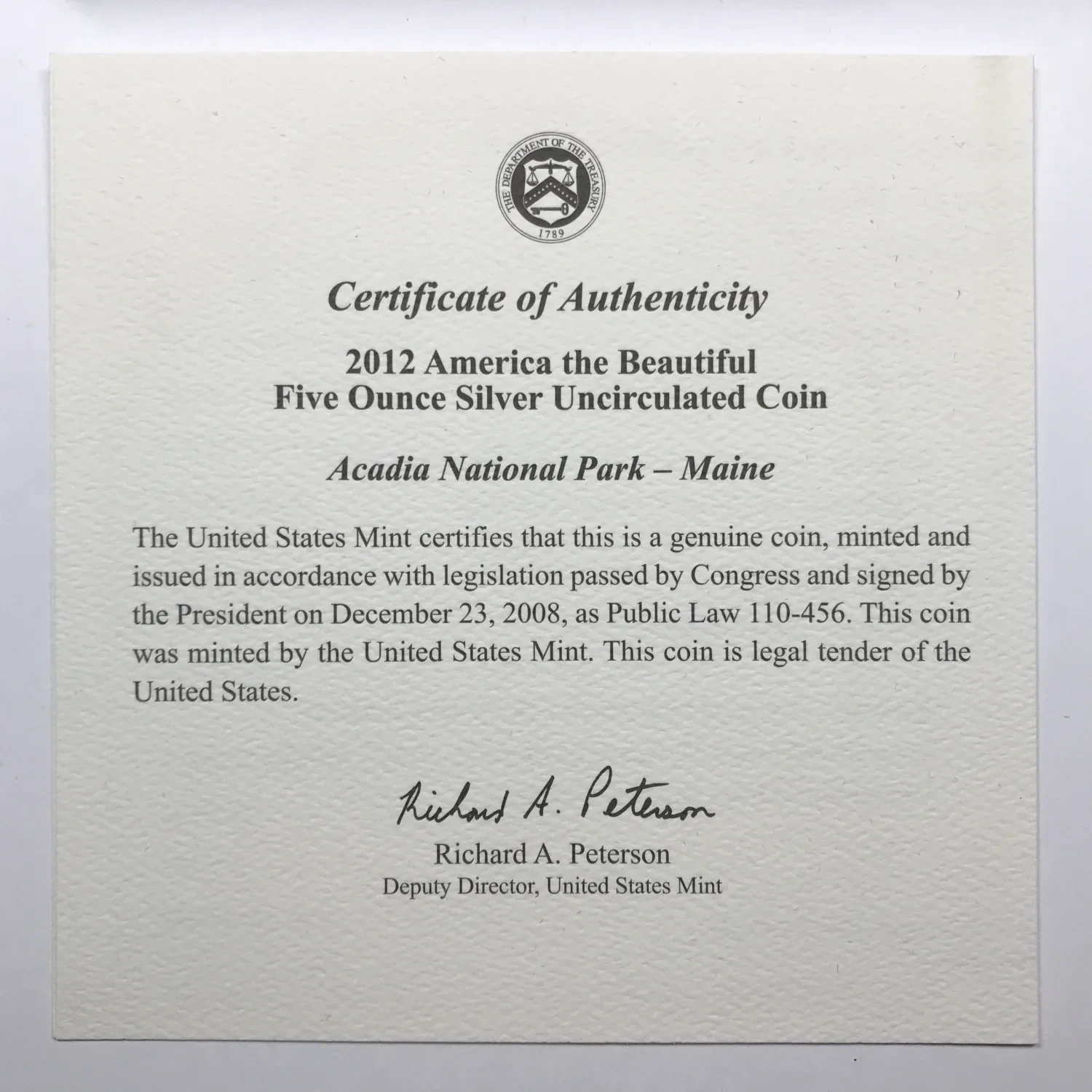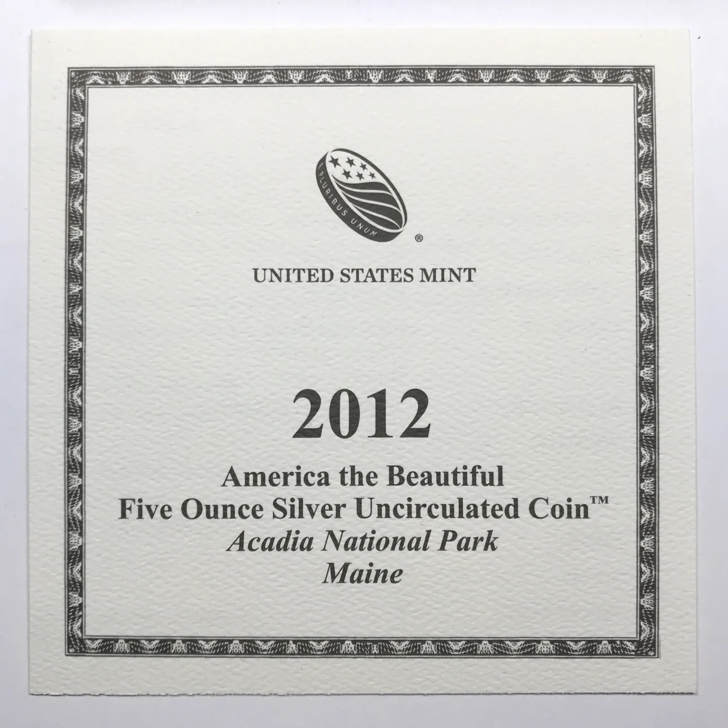 2012-P Acadia America the Beautiful 5 oz Silver Uncirculated Coin