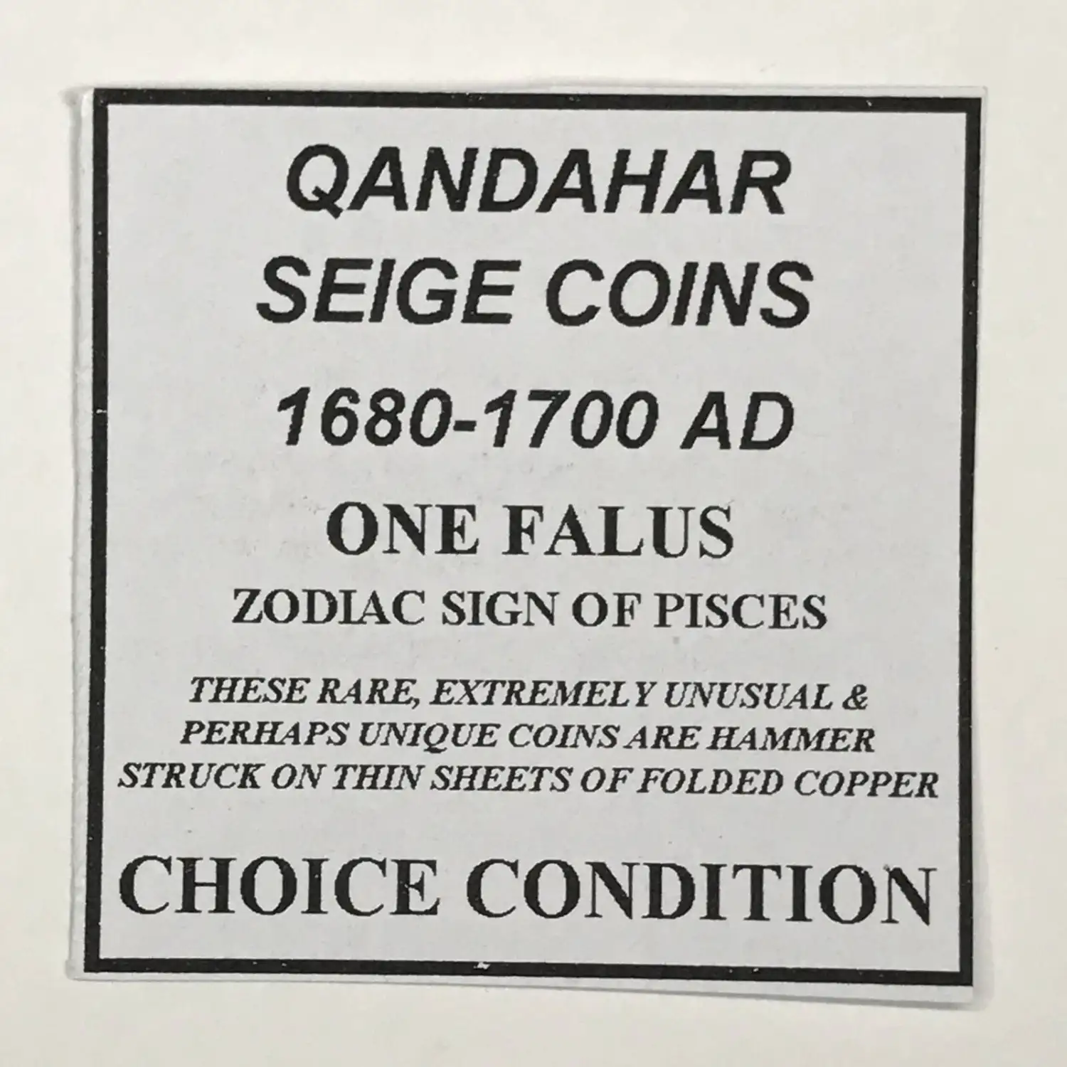 | Name | Qandahar Folded Copper Falus Seige Coins |