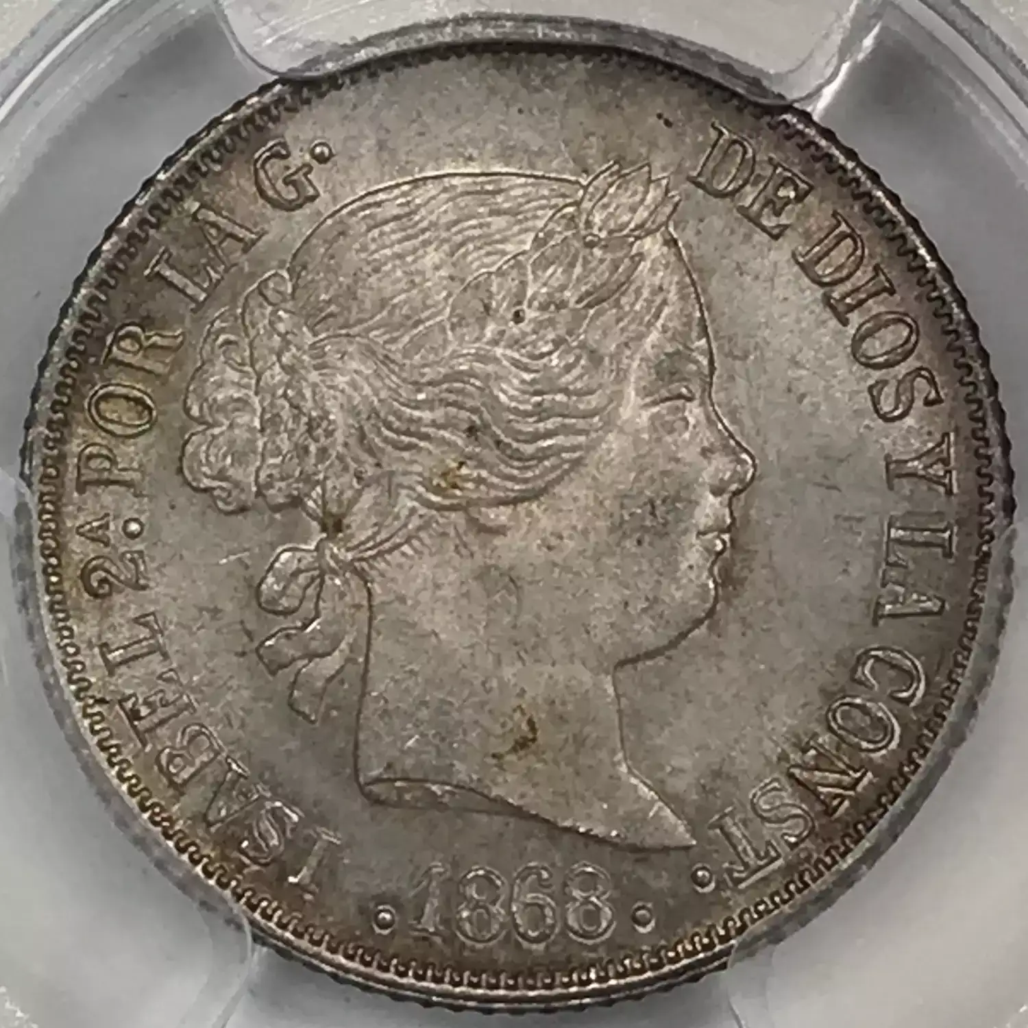 1868 PHILIPPINES Silver 10 CENTIMOS PCGS MS-65