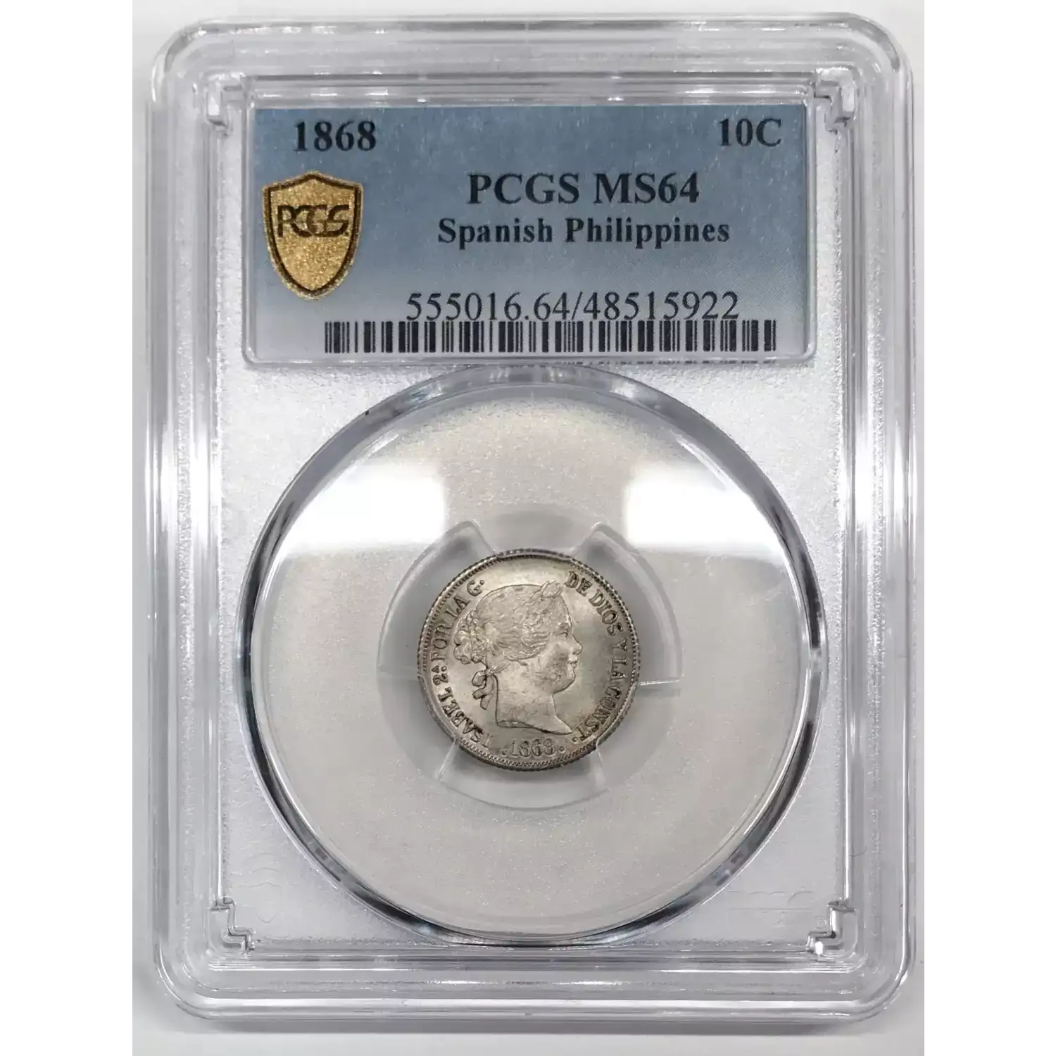 1868 SPANISH PHILIPPINES Silver 10 CENTIMOS PCGS MS-64 - KM-145 - Nice fresh slab, straight from PCGS to our store.