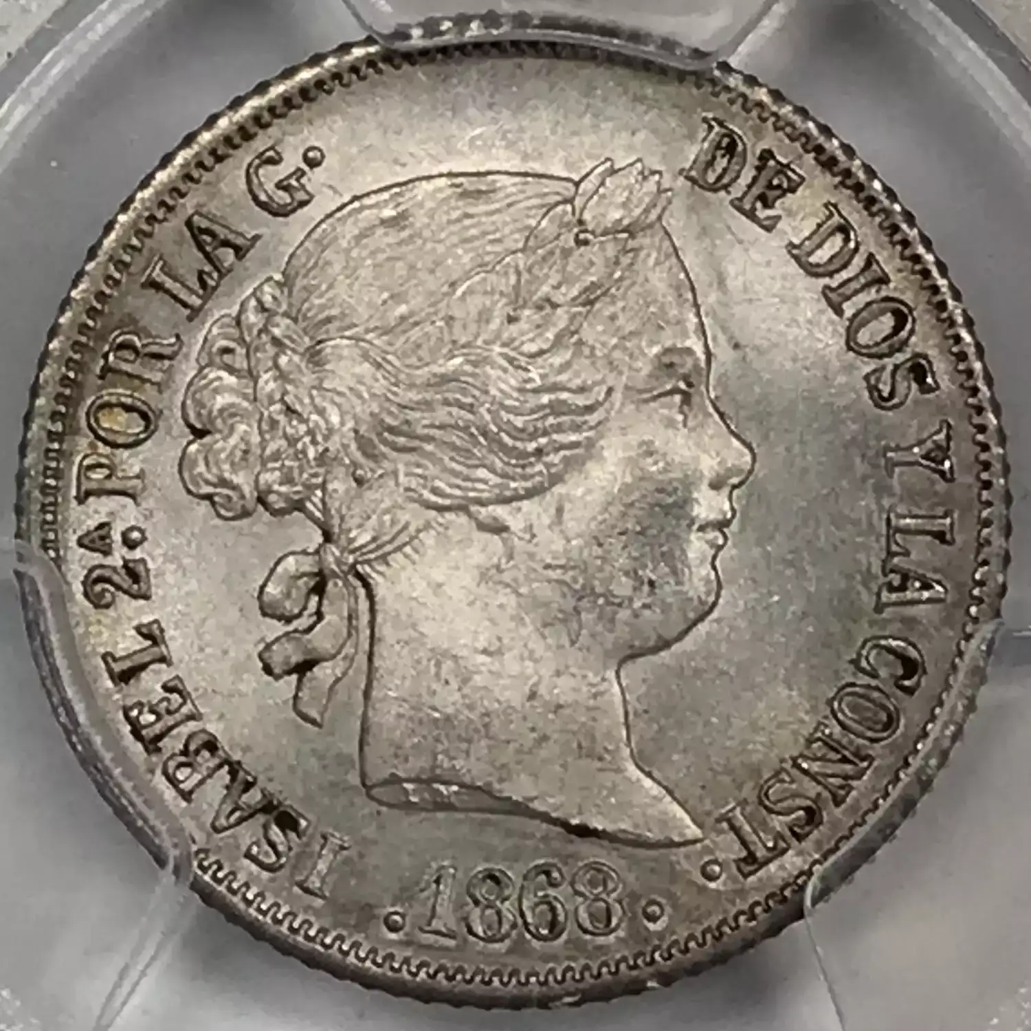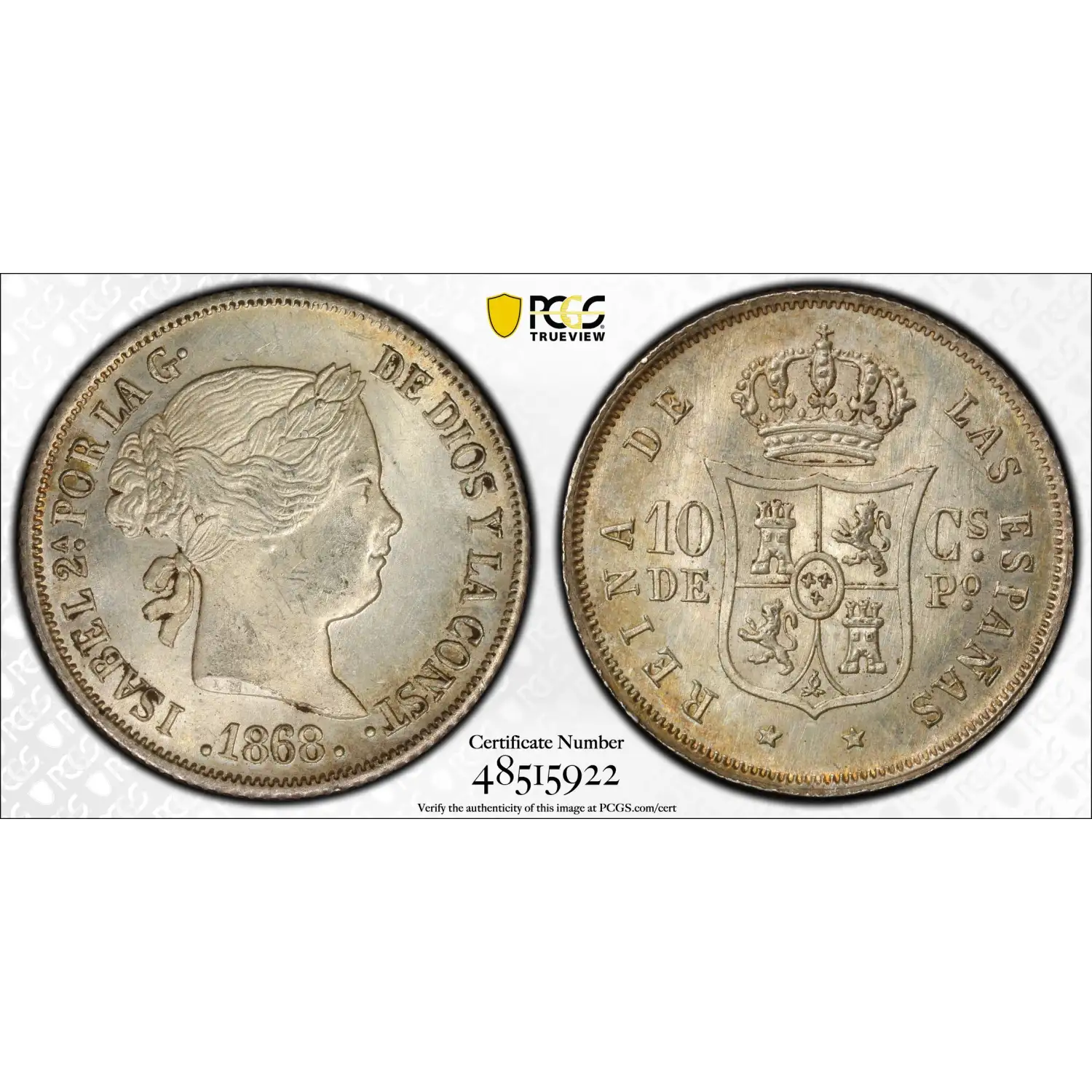 1868 PHILIPPINES Silver 10 CENTIMOS PCGS MS-64