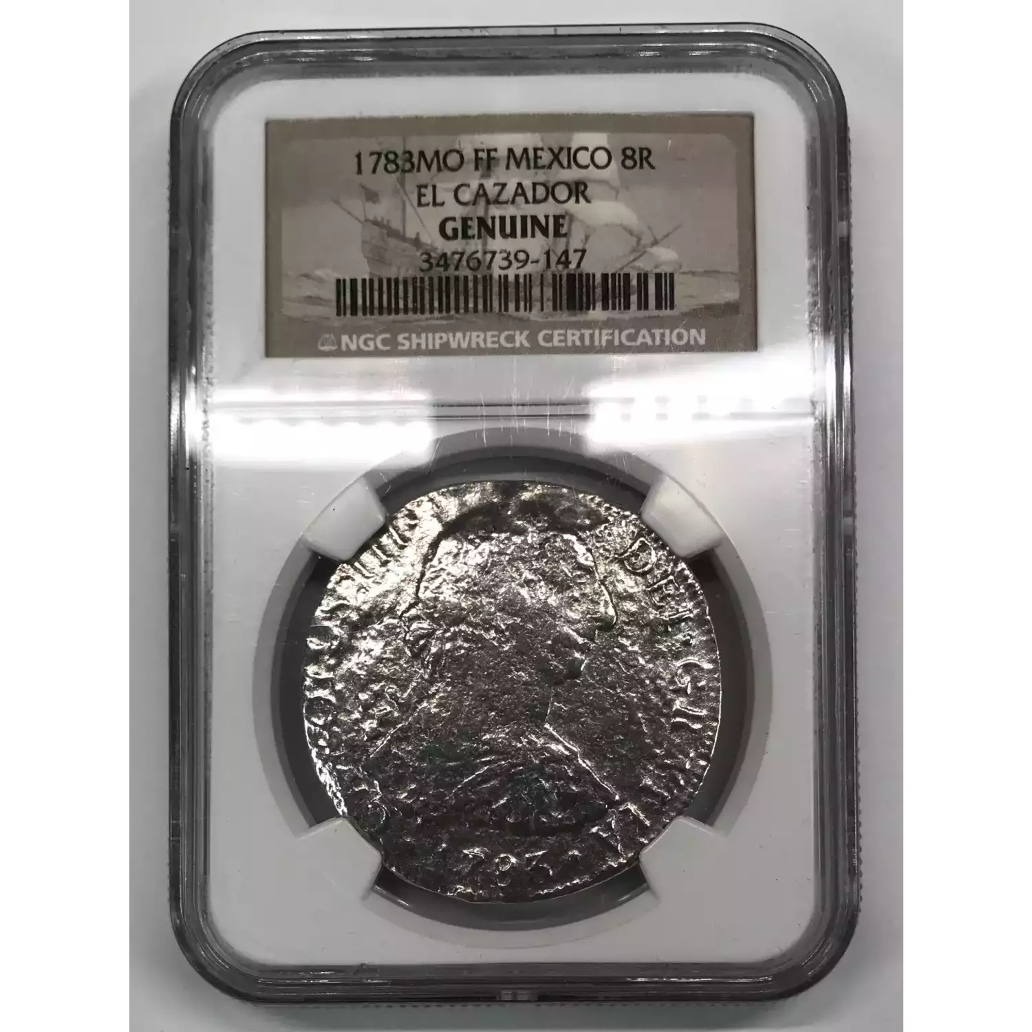 1783 Mo FF MEXICO Silver 8 REALES - EL CAZADOR SHIPWRECK - NGC GENUINE - Charles III - we have multiples of these broken into A/B/C pricing tiers based on eye appeal - this coin in in tier "C"