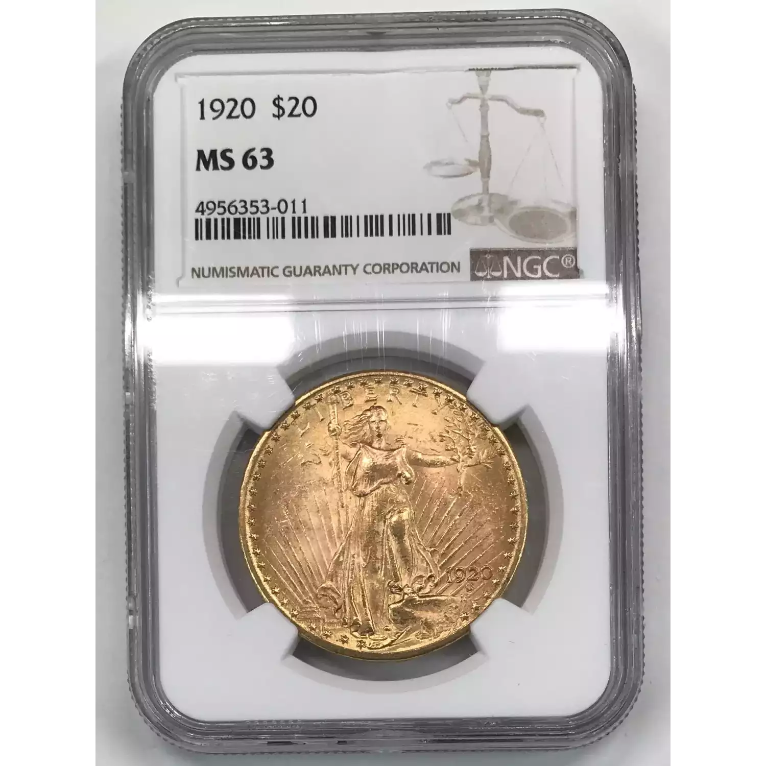 1920 Saint Gaudens $20 Gold Double Eagle NGC MS-63