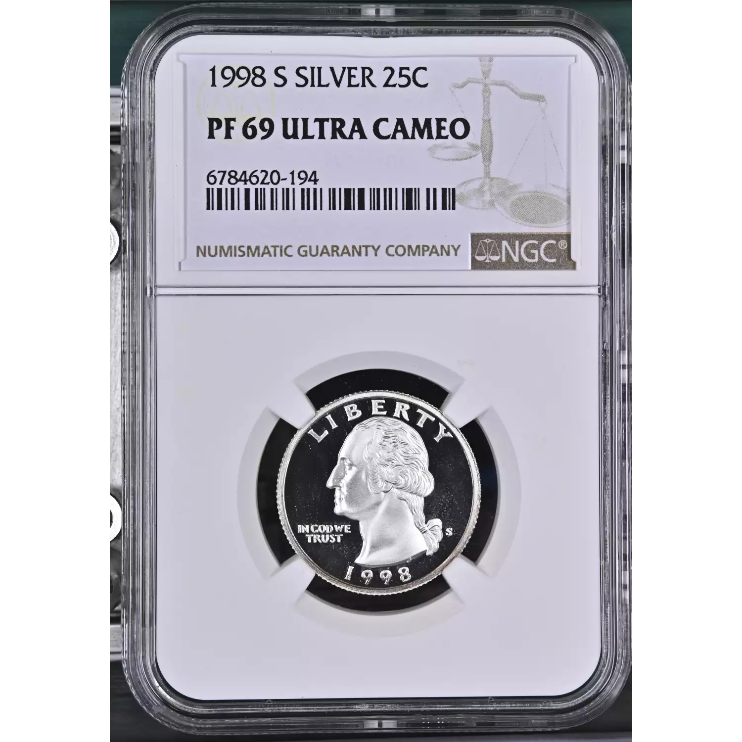 1998-S Silver Washington Quarter NGC PF-69 ULTRA CAMEO