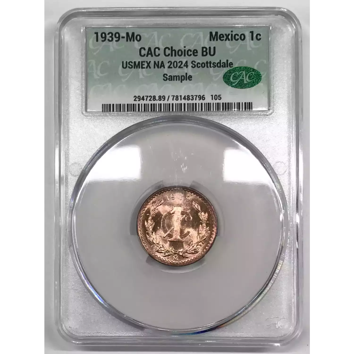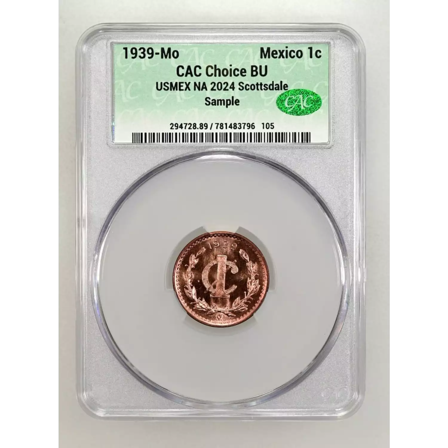 USMEX NA 2024 Scottsdale, AZ Coin Show Sample Slab - 1939 Mo MEXICO Bronze CENTAVO CAC Grading (CACG) Choice BU