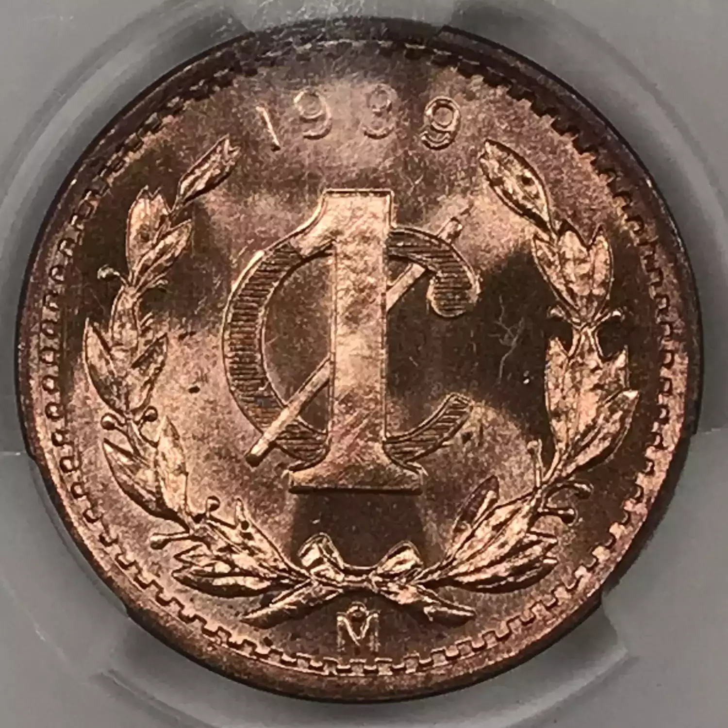 1939-Mo MEXICO Bronze CENTAVO CACG Choice BU USMEX 2024 Coin Show Sample Slab CAC