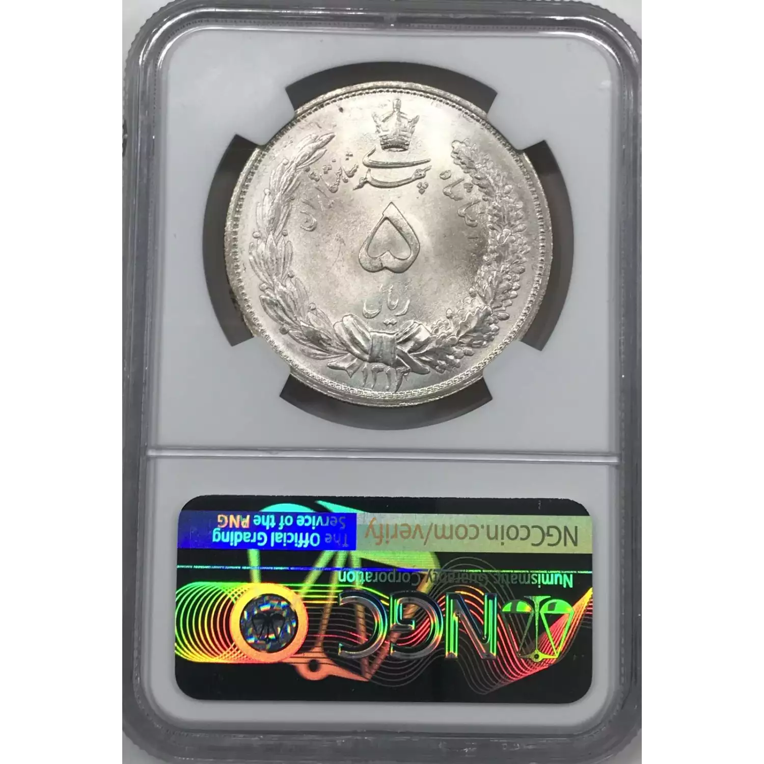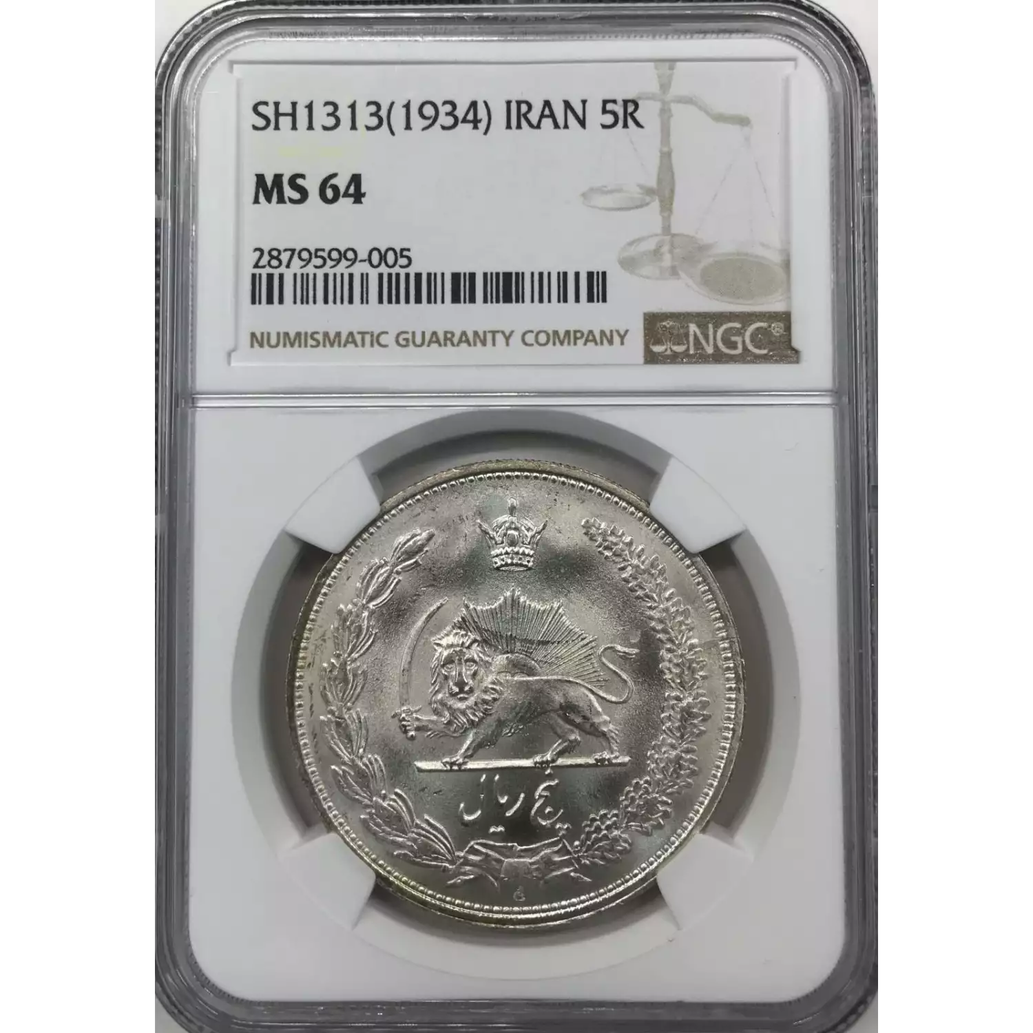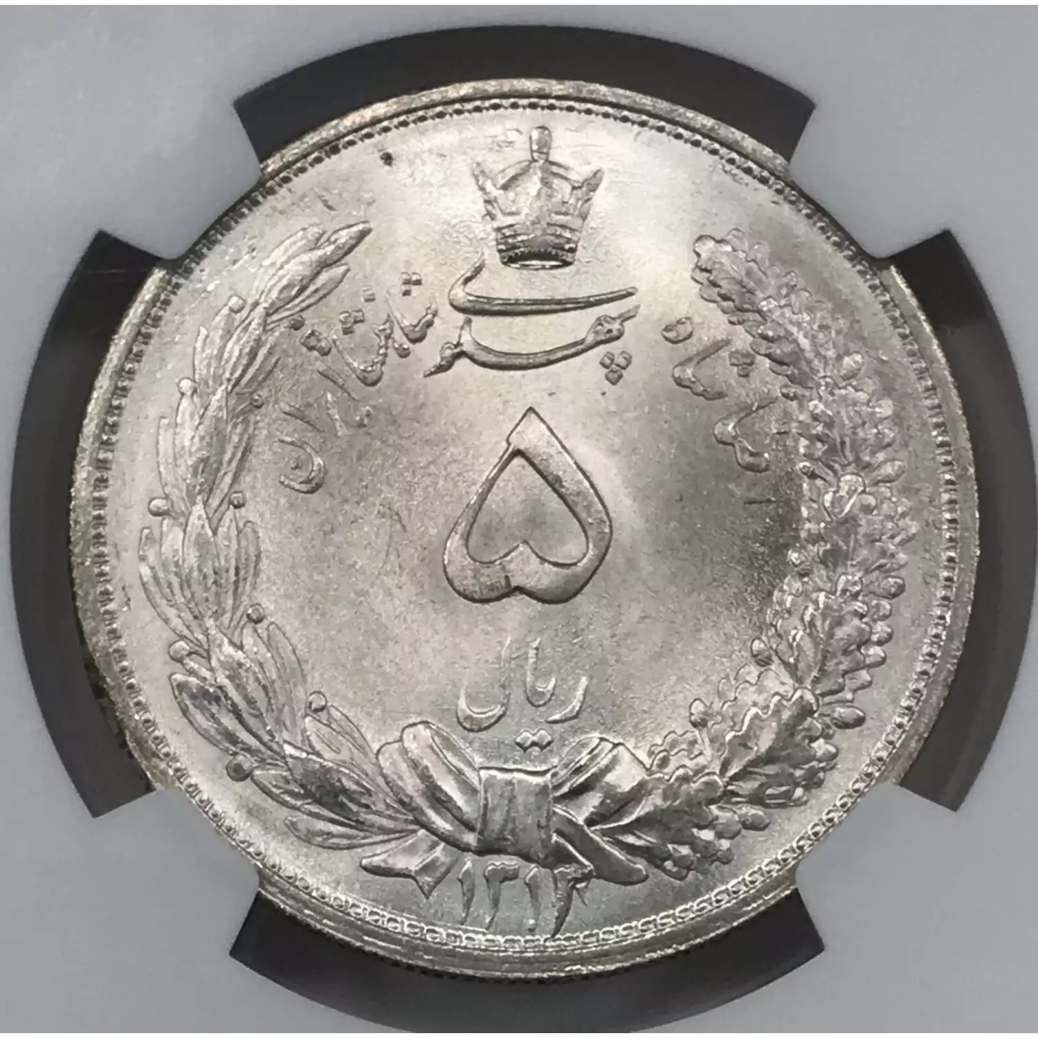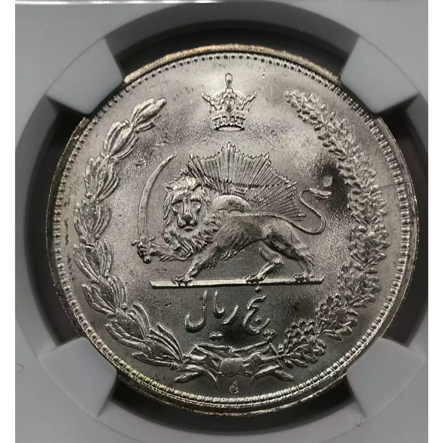 0 IRAN Silver 5 RIALS NGC MS-64 SH1313(1934)