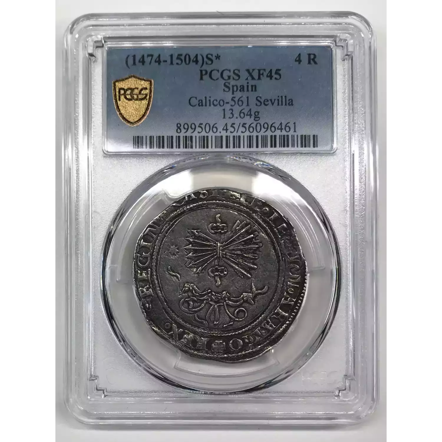 (1474-1504) S* Spain Silver 4 Reales Cob PCGS XF-45 - Calico-561 Sevilla (Seville Mint) - Ferdinand V & Isabella I