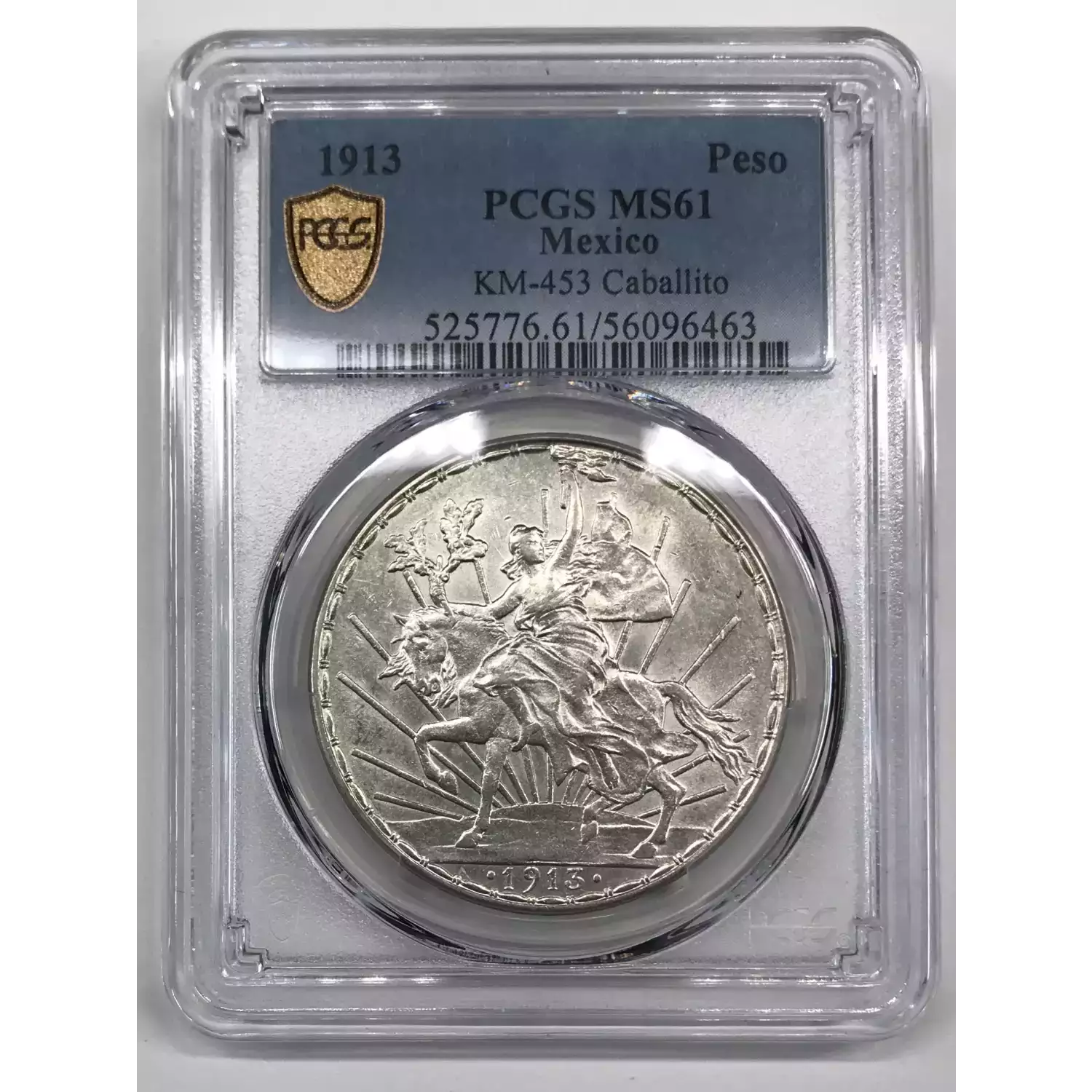 1913 Mexico Silver Caballito Peso PCGS MS-61 KM-453