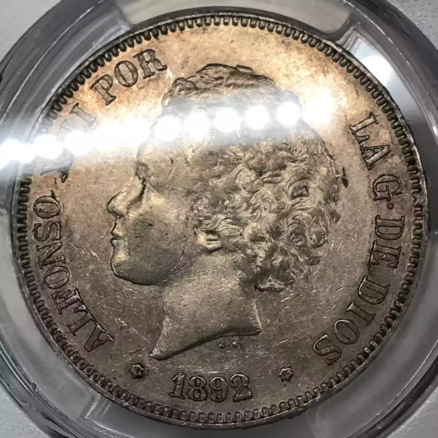 1892-PG M Spain Silver 5 PESETAS PCGS AU-50 KM-700 Child's Head (1892)