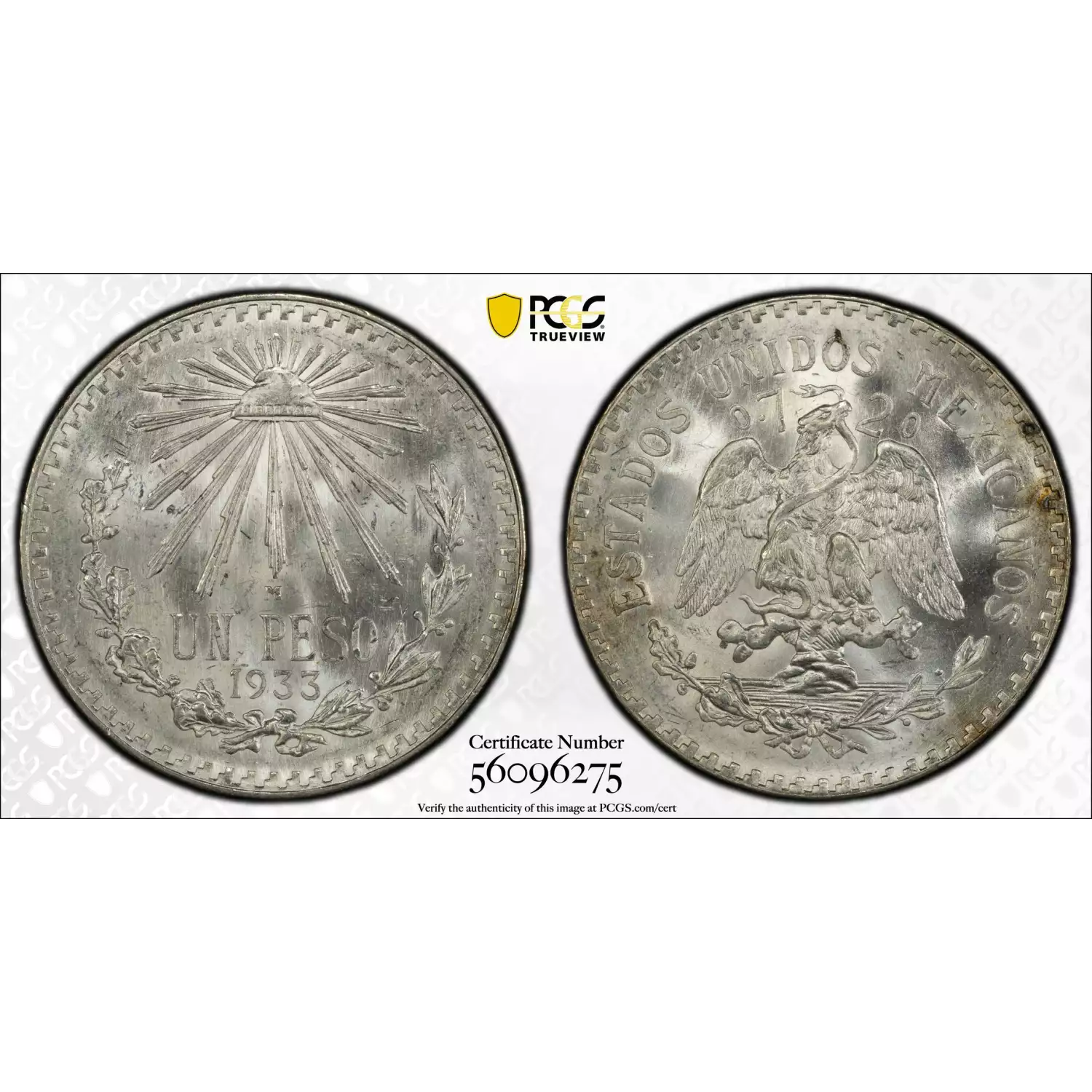 1933-M MEXICO Silver PESO PCGS MS-65 KM-455