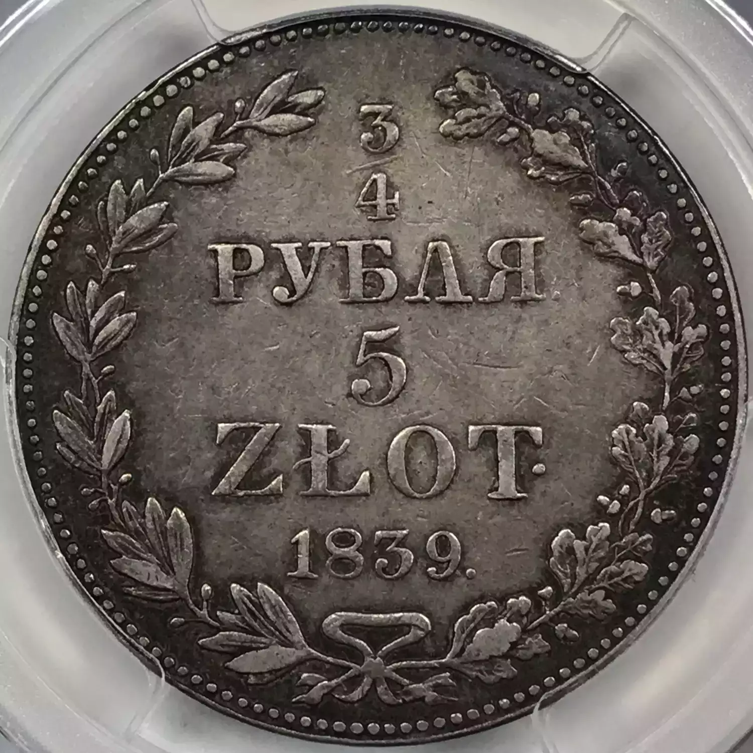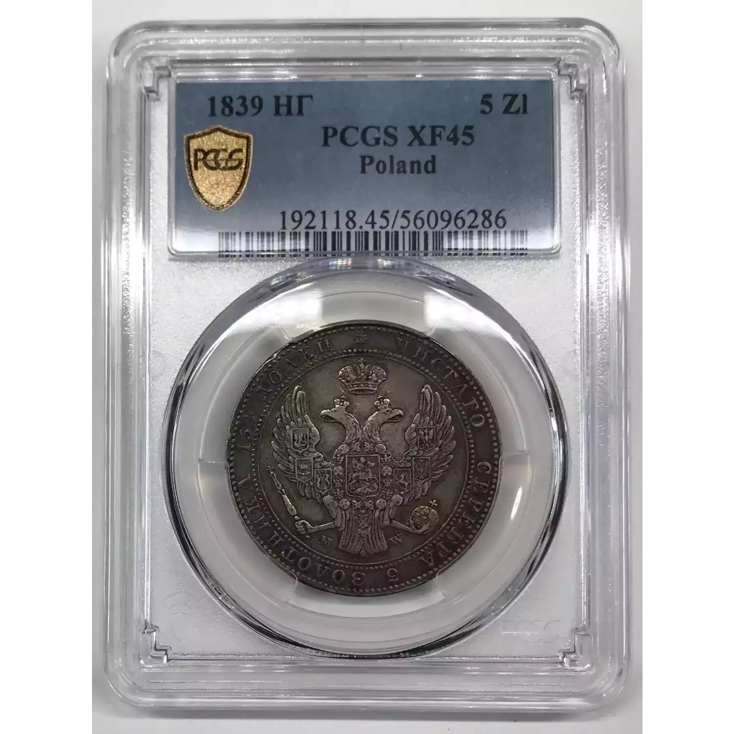 1839-MW POLAND Silver 5 ZLOTYCH (3/4 RUBLE) PCGS XF-45 C#133 - mechanical error label - this is MW mintmark (PCGS# 170361), not HГ as the label indicates
