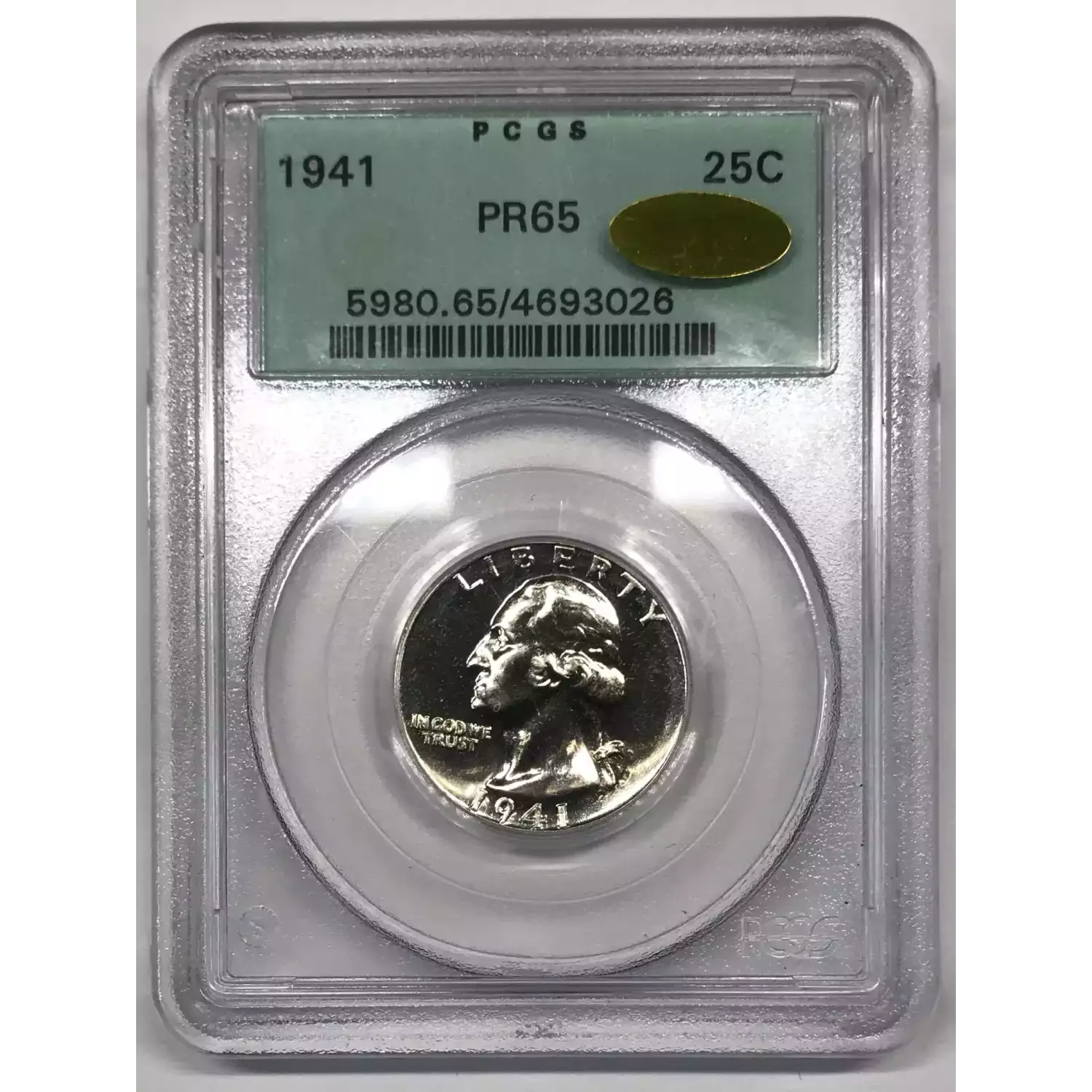1941 Proof Washington Quarter PCGS PR65 CAC Gold