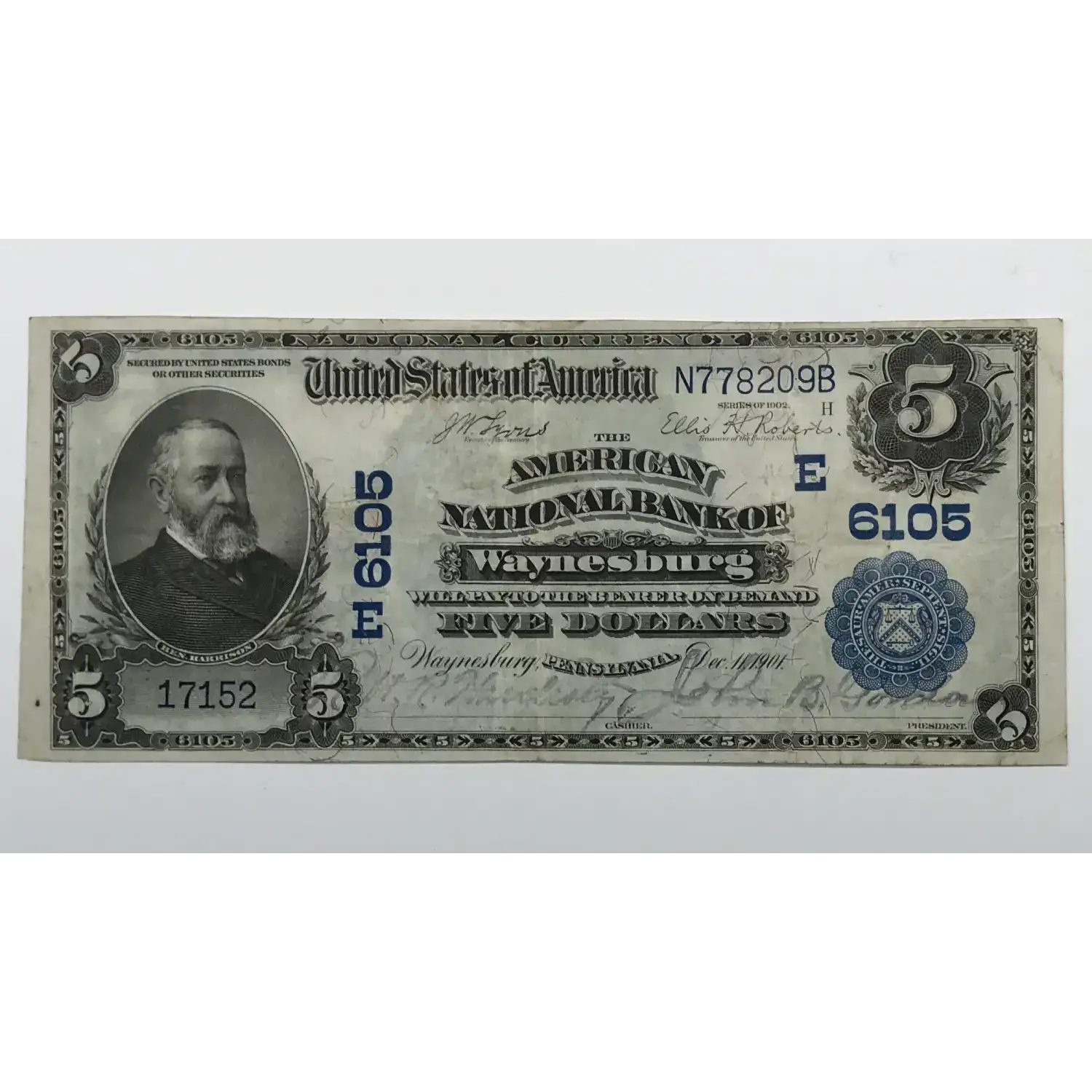 1902 American National Bank of Waynesburg Pennsylvania $5 Note CH#6105 FR#3598