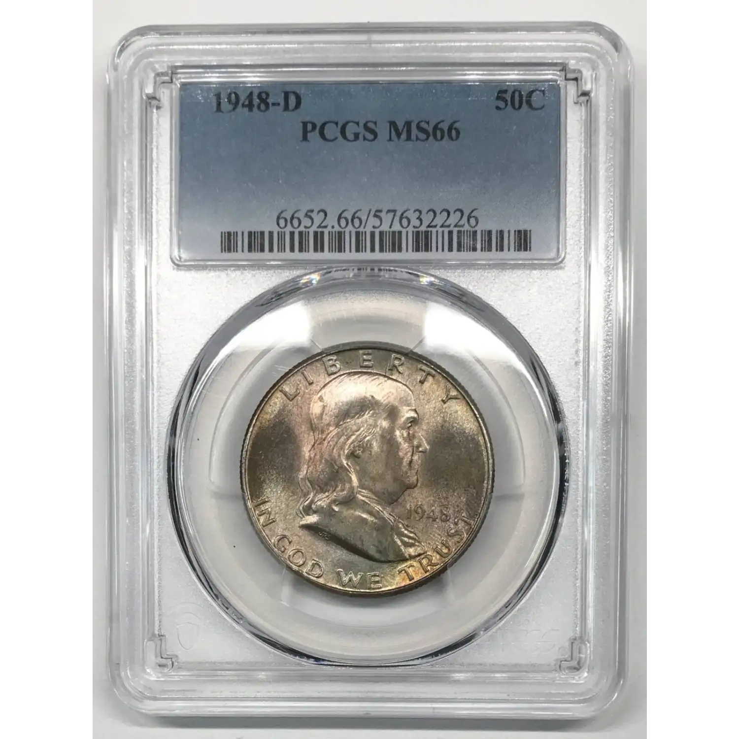 1948 D Franklin Half Dollar PCGS MS-66 *Rainbow Toning*