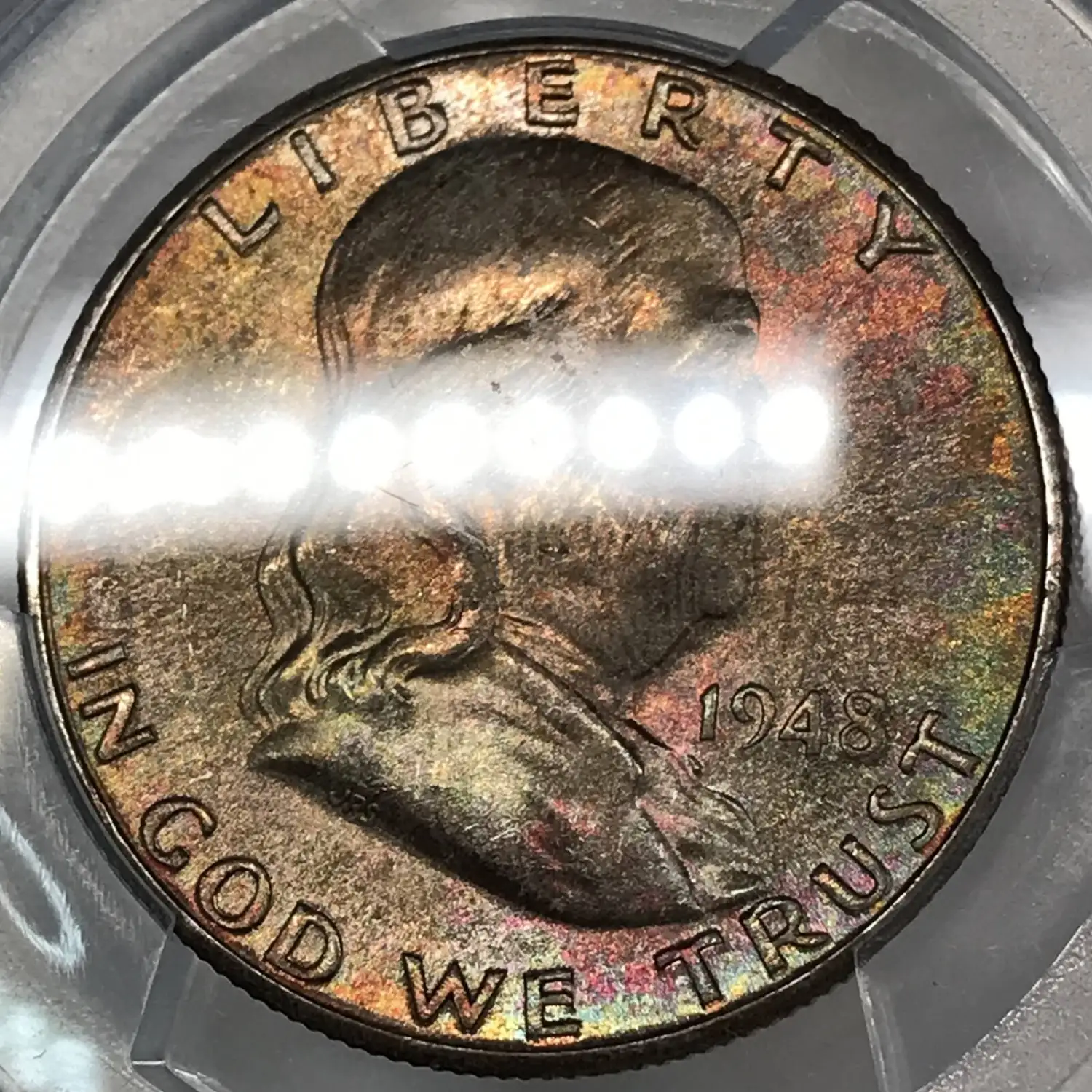 1948 D Franklin Half Dollar PCGS MS-65 FBL *Rainbow Toning*