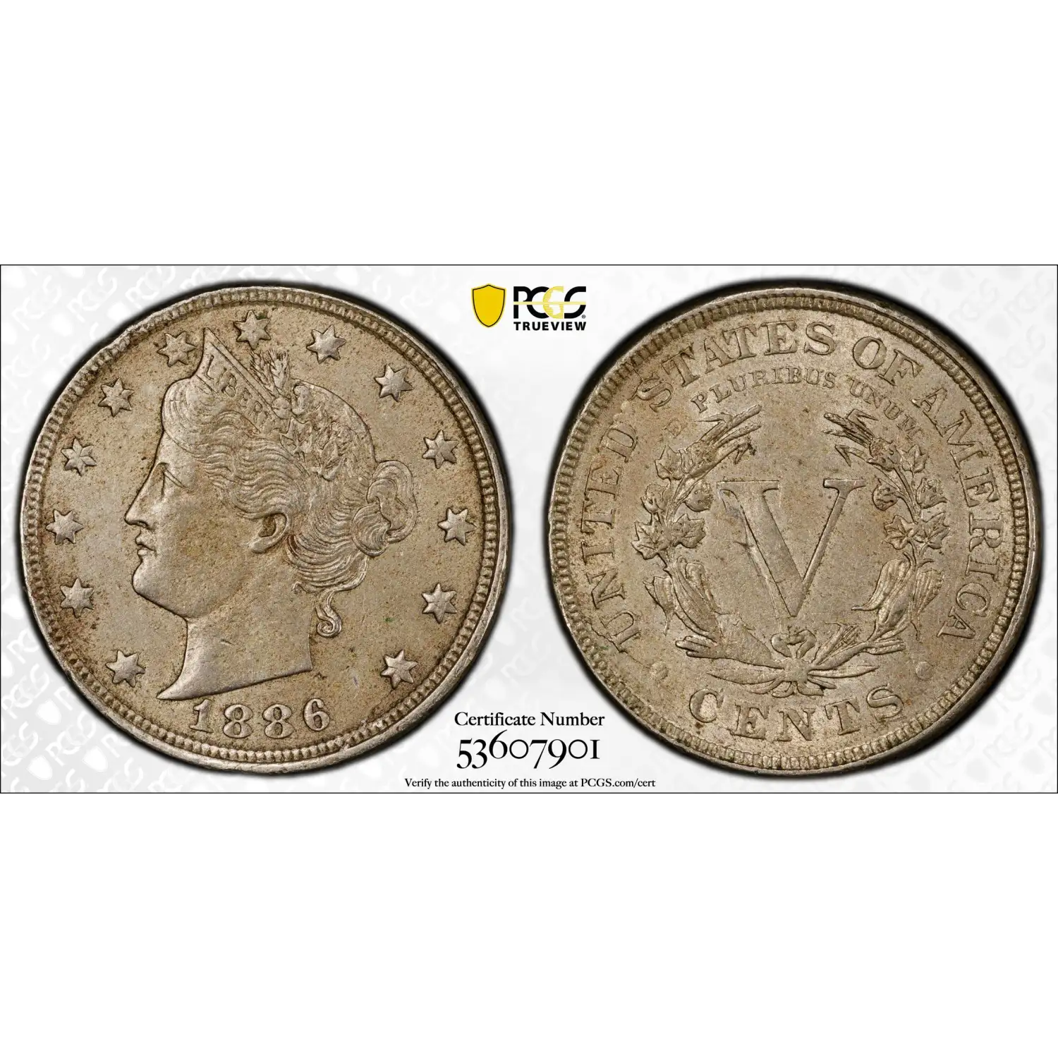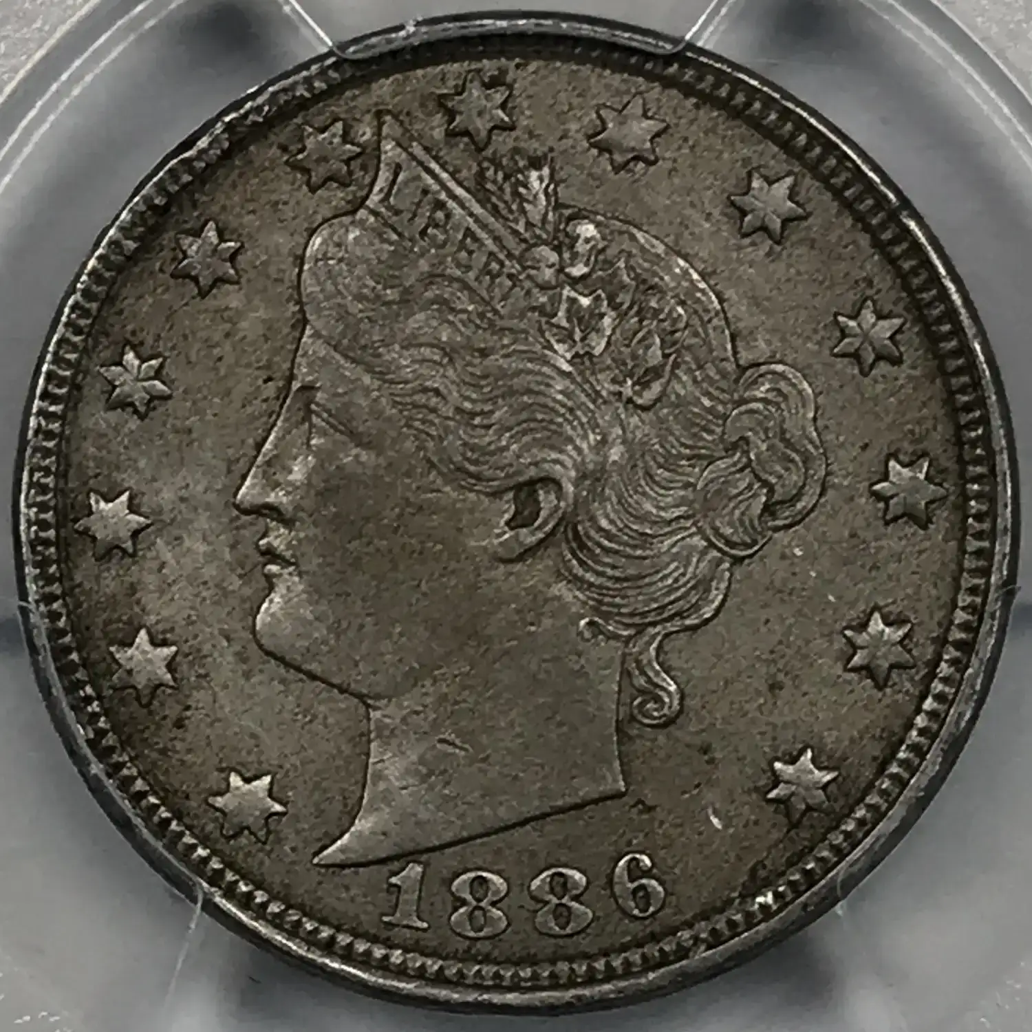 1886 P Liberty Head V Nickel PCGS AU Details (scratch) - scratch on reverse next to "V"