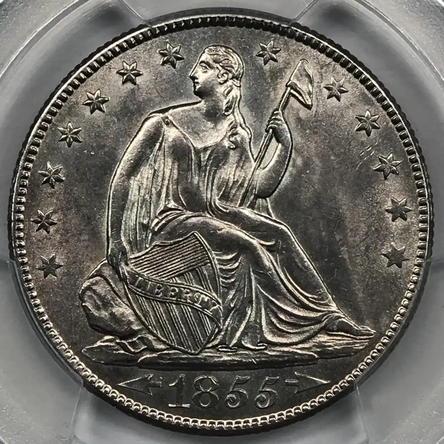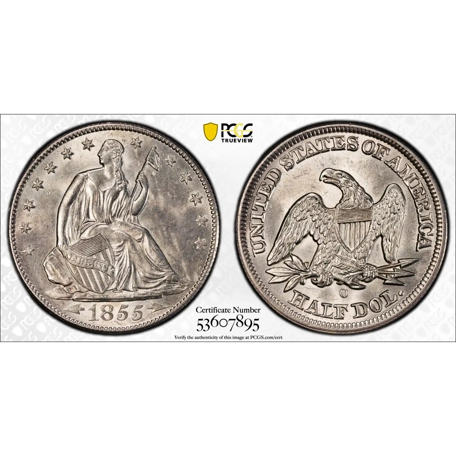 1855 O Arrows Seated Liberty Half Dollar PCGS UNC Details (cleaned)