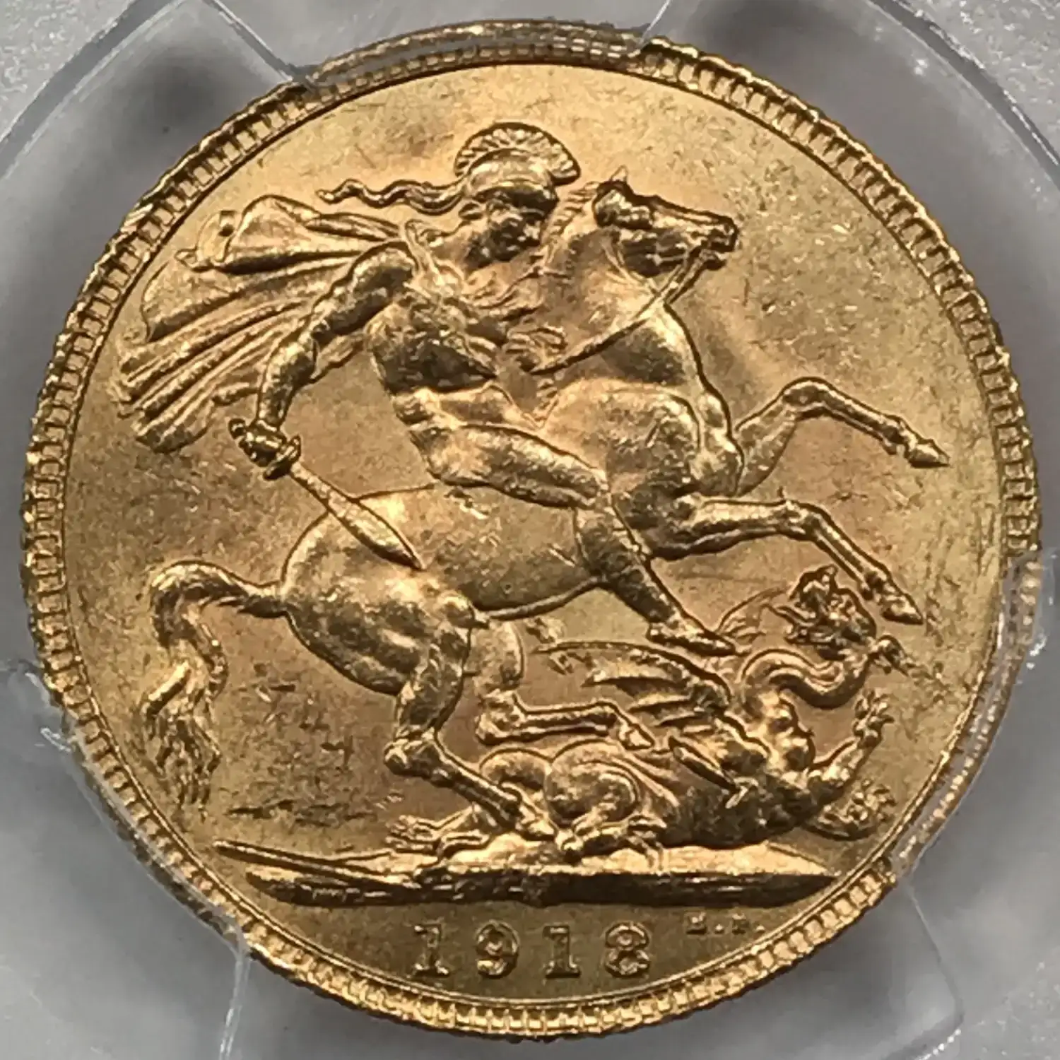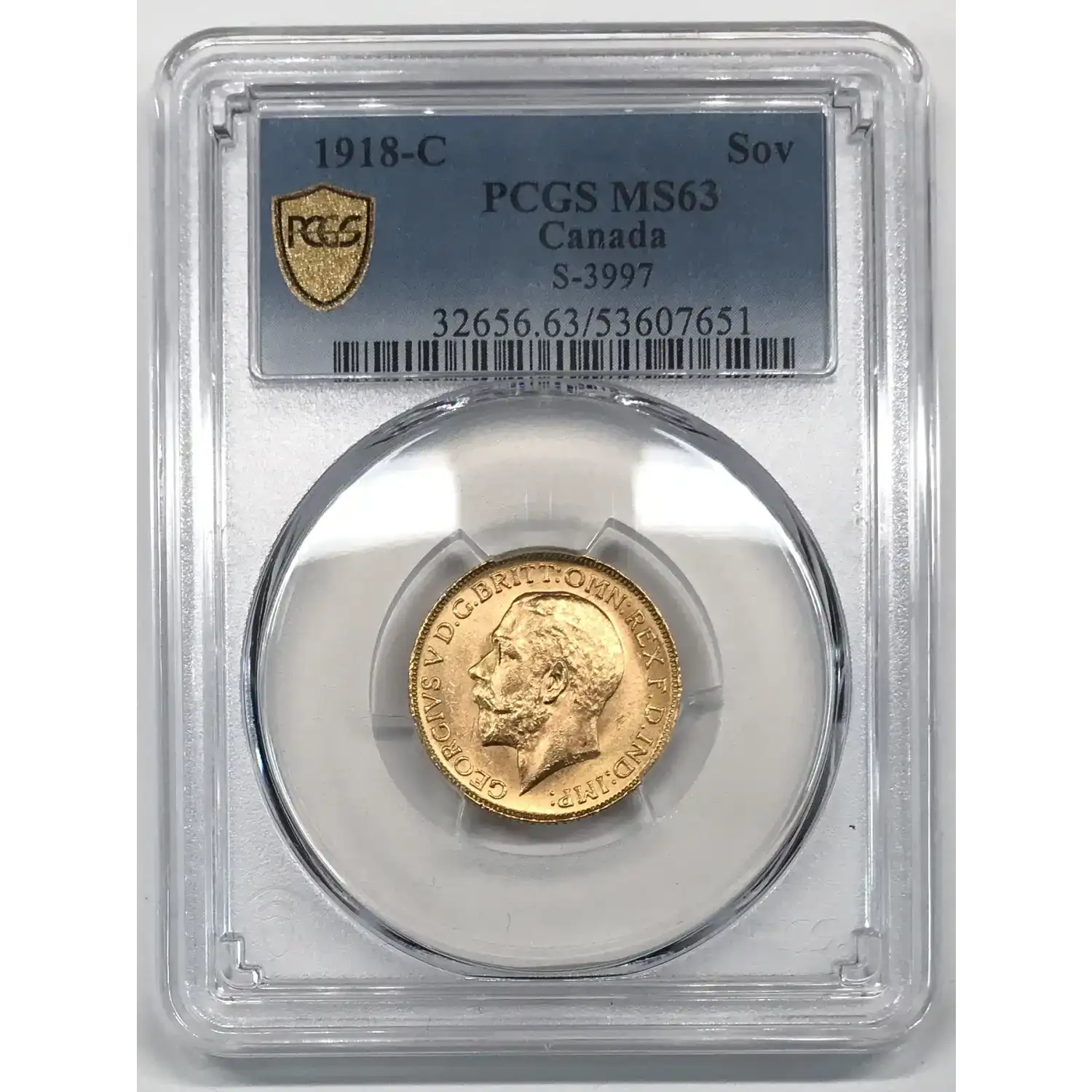 1918-C Great Britain/UK Gold Sovereign PCGS MS-63 - George V - KM-820, S-3997 - Ottawa Mint, Canada - 7.99 g, 0.9167 fine gold, 0.2355 troy oz adjusted gold weight (AGW)