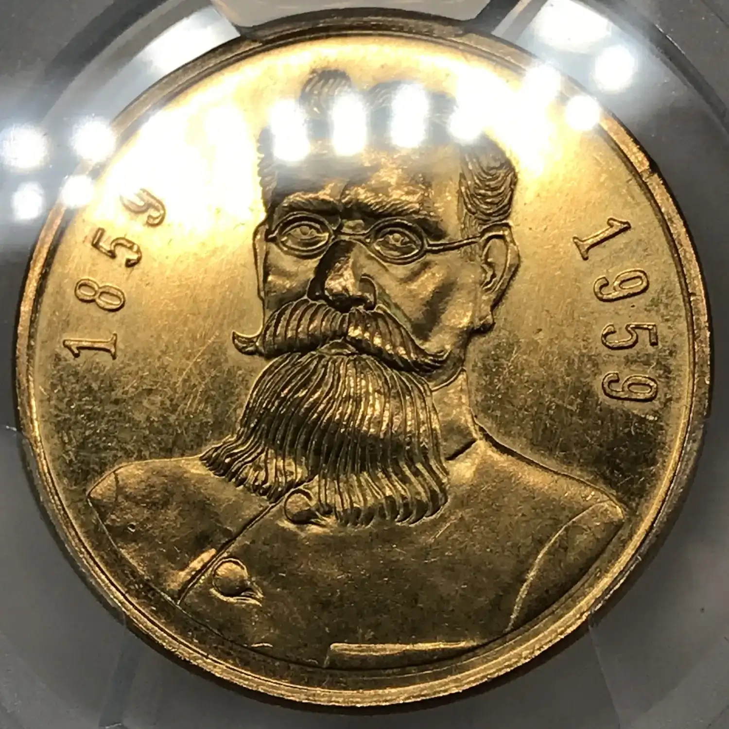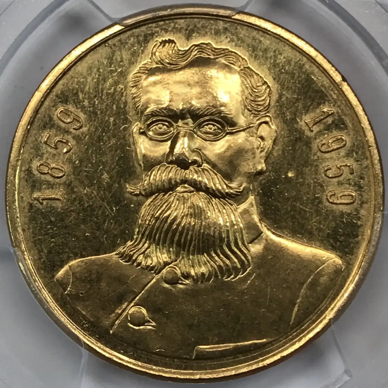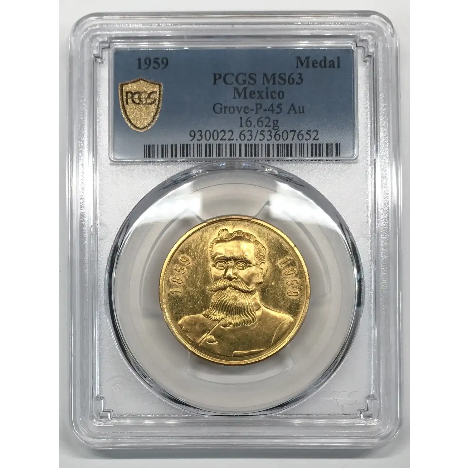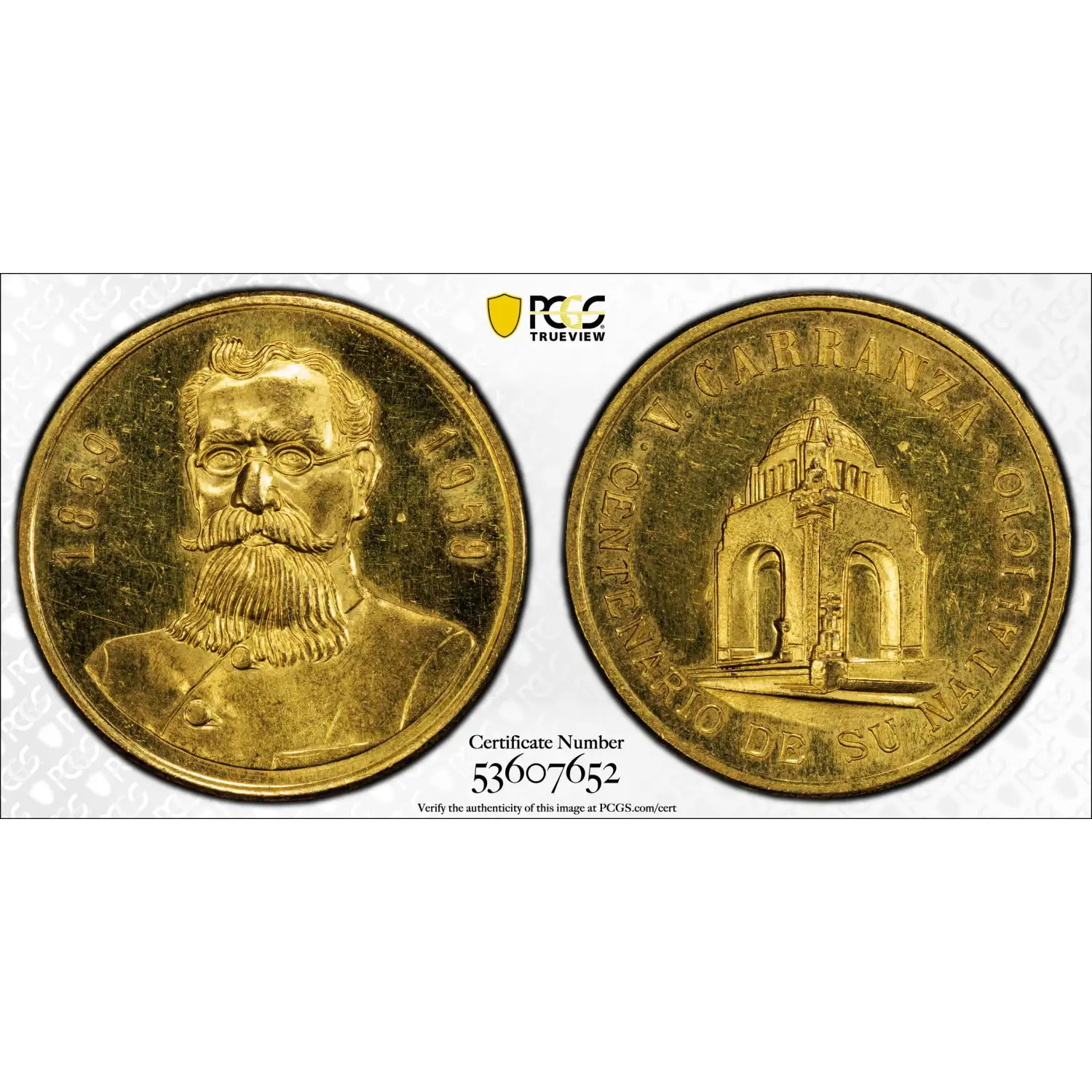 1959 Carranza 100th Anniversary of Birth Mexico Grove-P-45 Au Gold Medal PCGS MS63 - 16.62 g, tests .999 fine gold