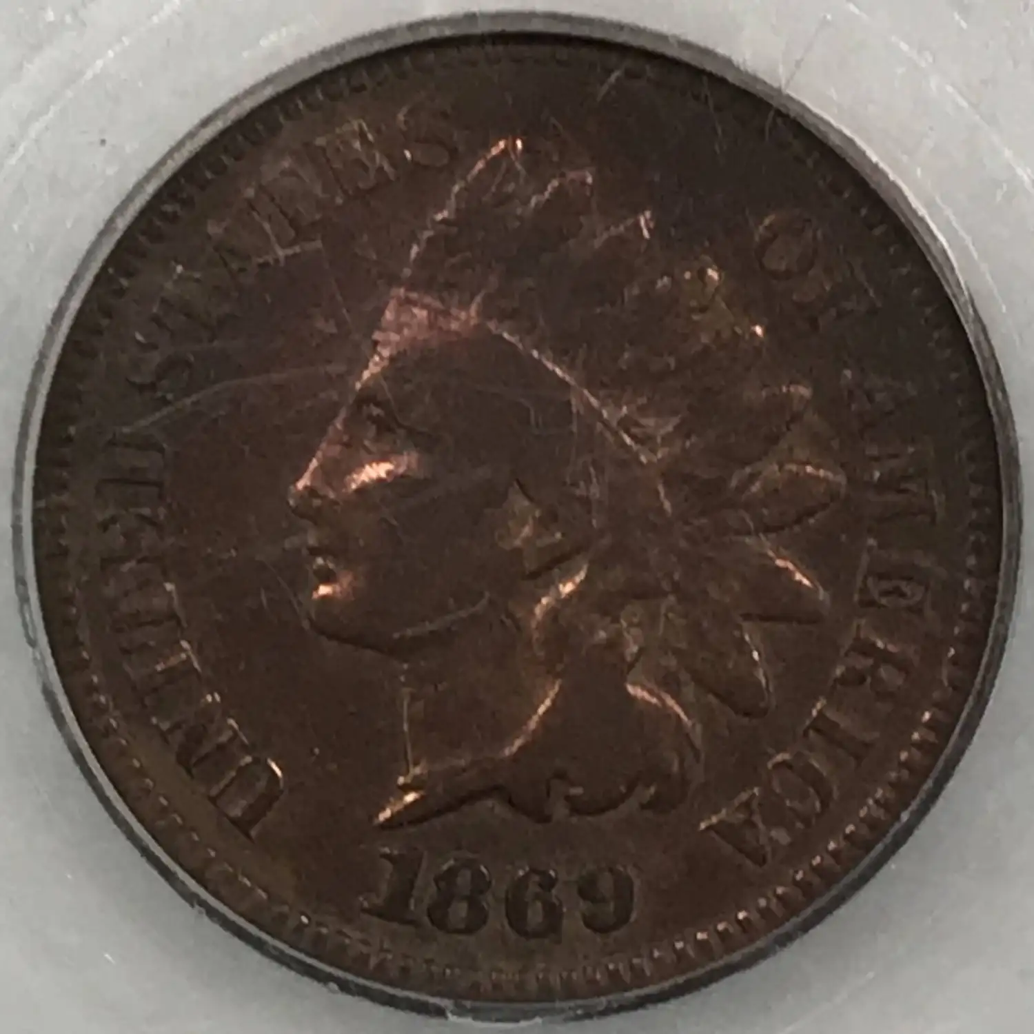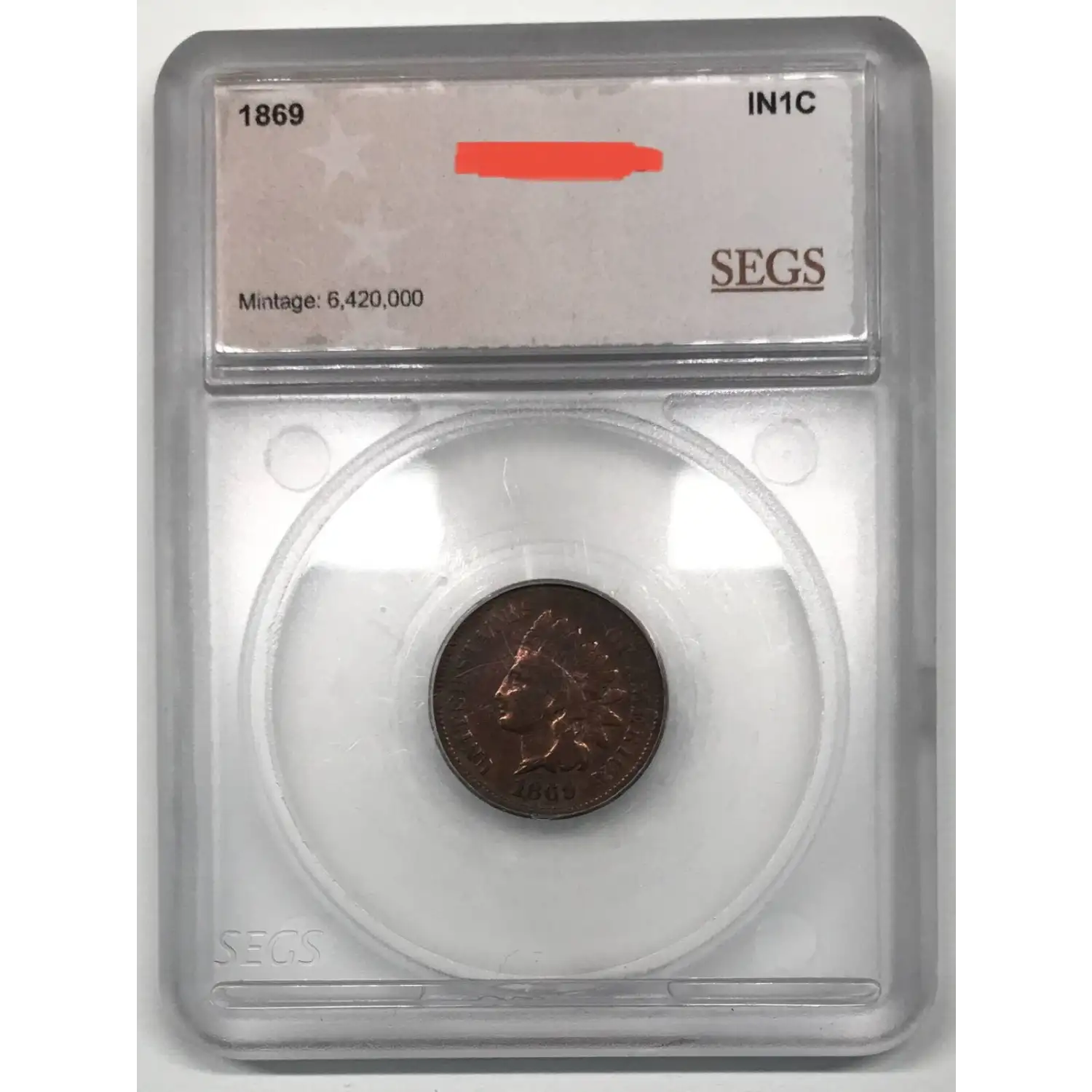 1869 Indian Head Cent - Fine/F Details (cleaned) - SEGS holder - note that grade has been covered in order to comply with eBay listing policies