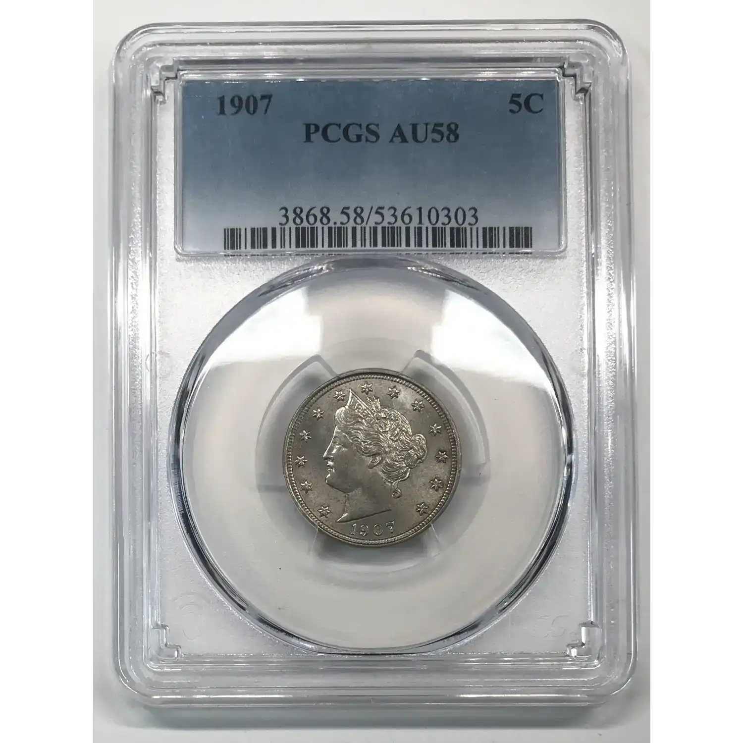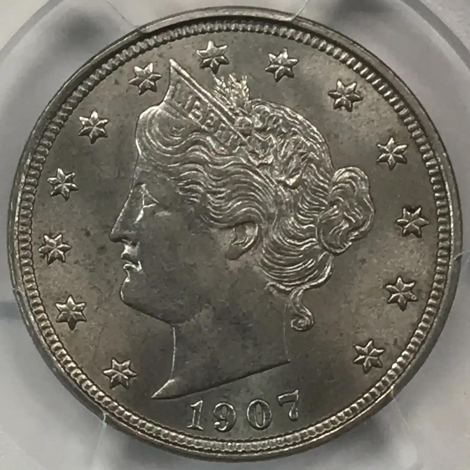 1907 P Liberty Head V Nickel PCGS AU-58