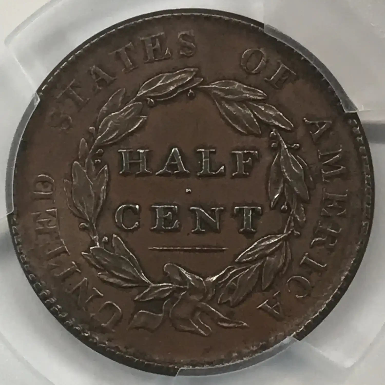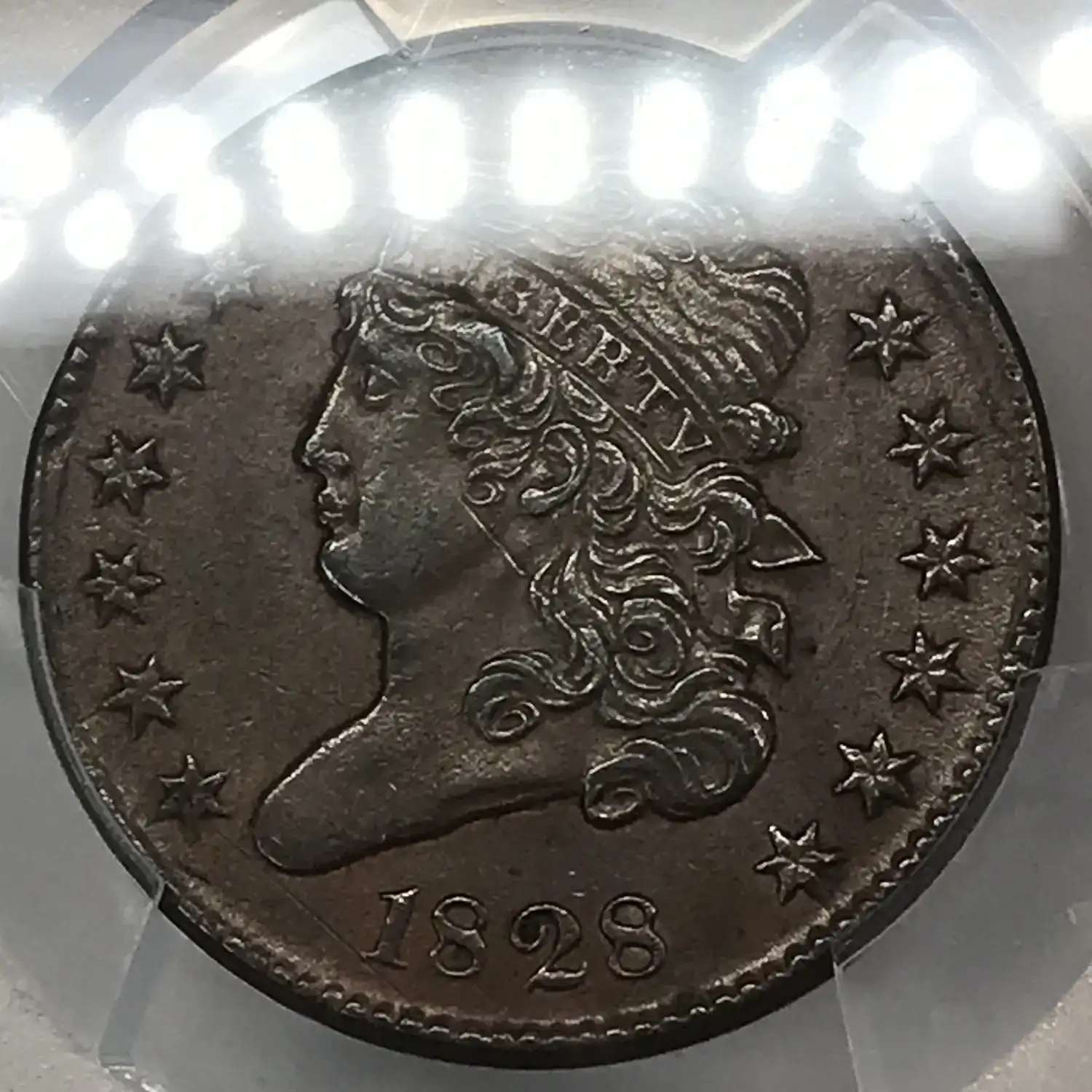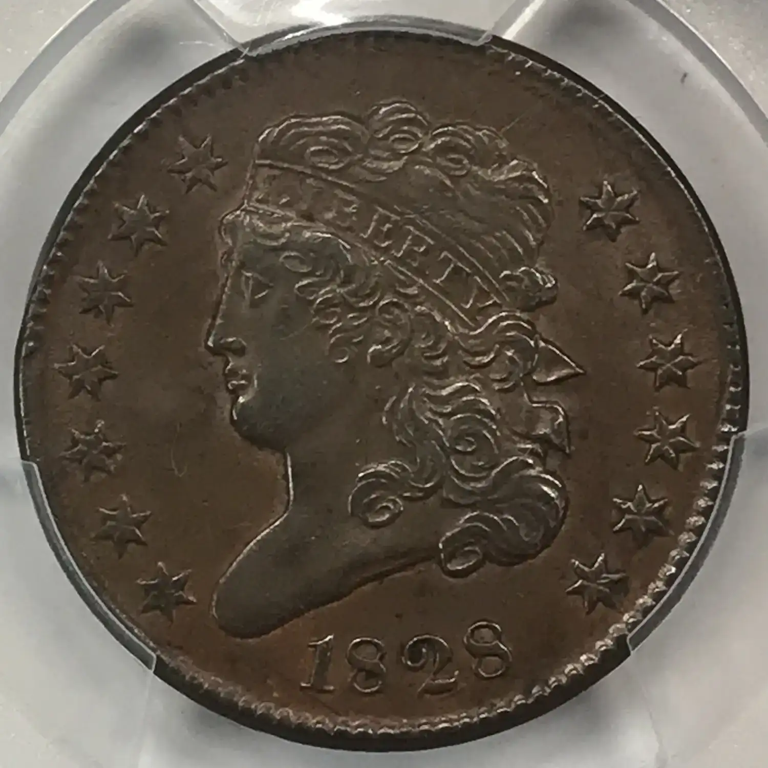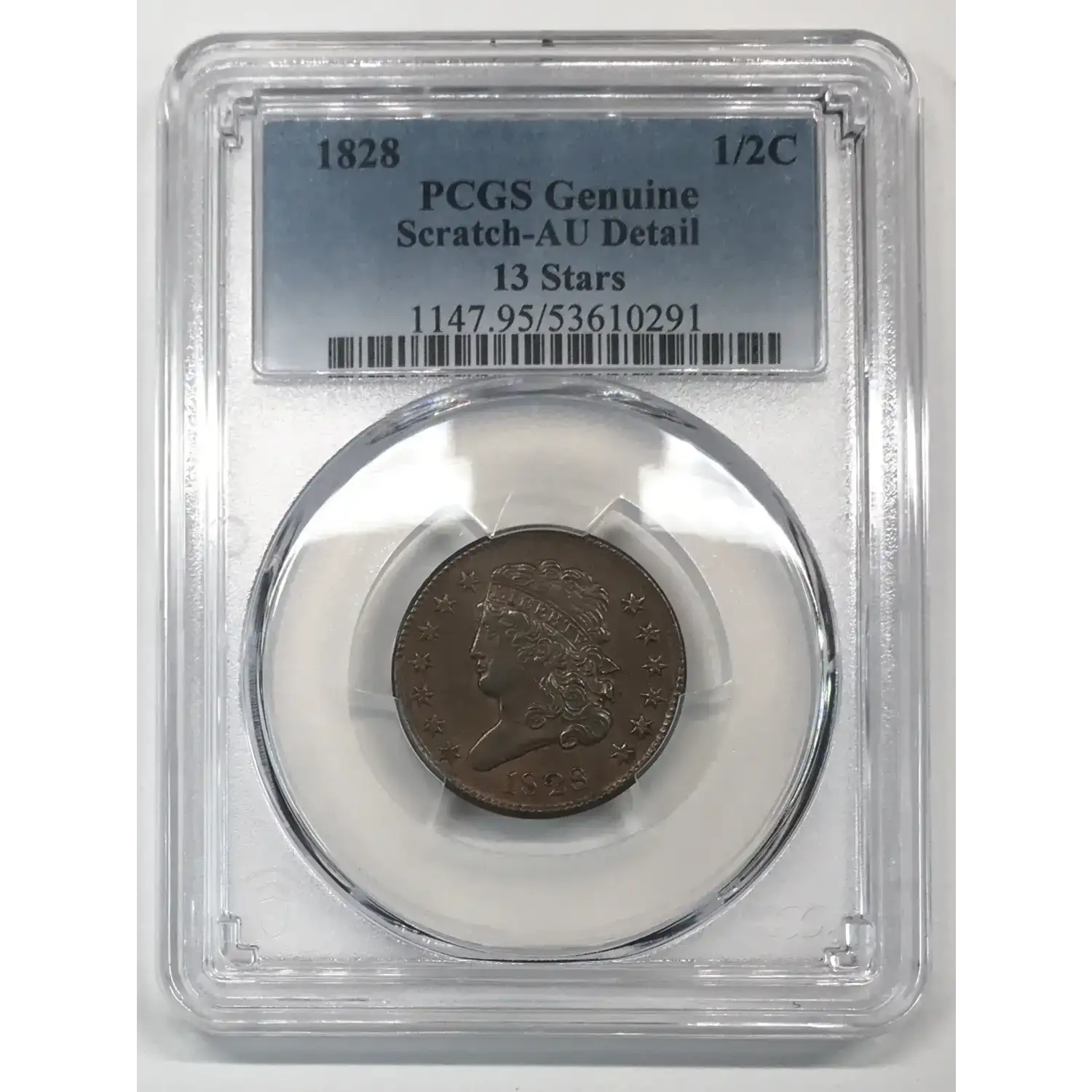 1828 Classic Head Half Cent PCGS Genuine - AU Details (95 - Scratch) BN 13 Stars