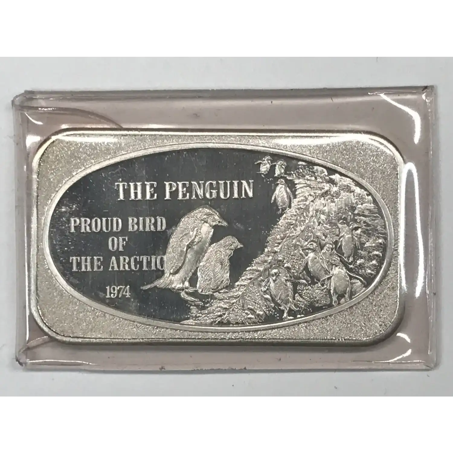 1974 1 oz Silver Bar Penguin Proud Bird of the Arctic USSC