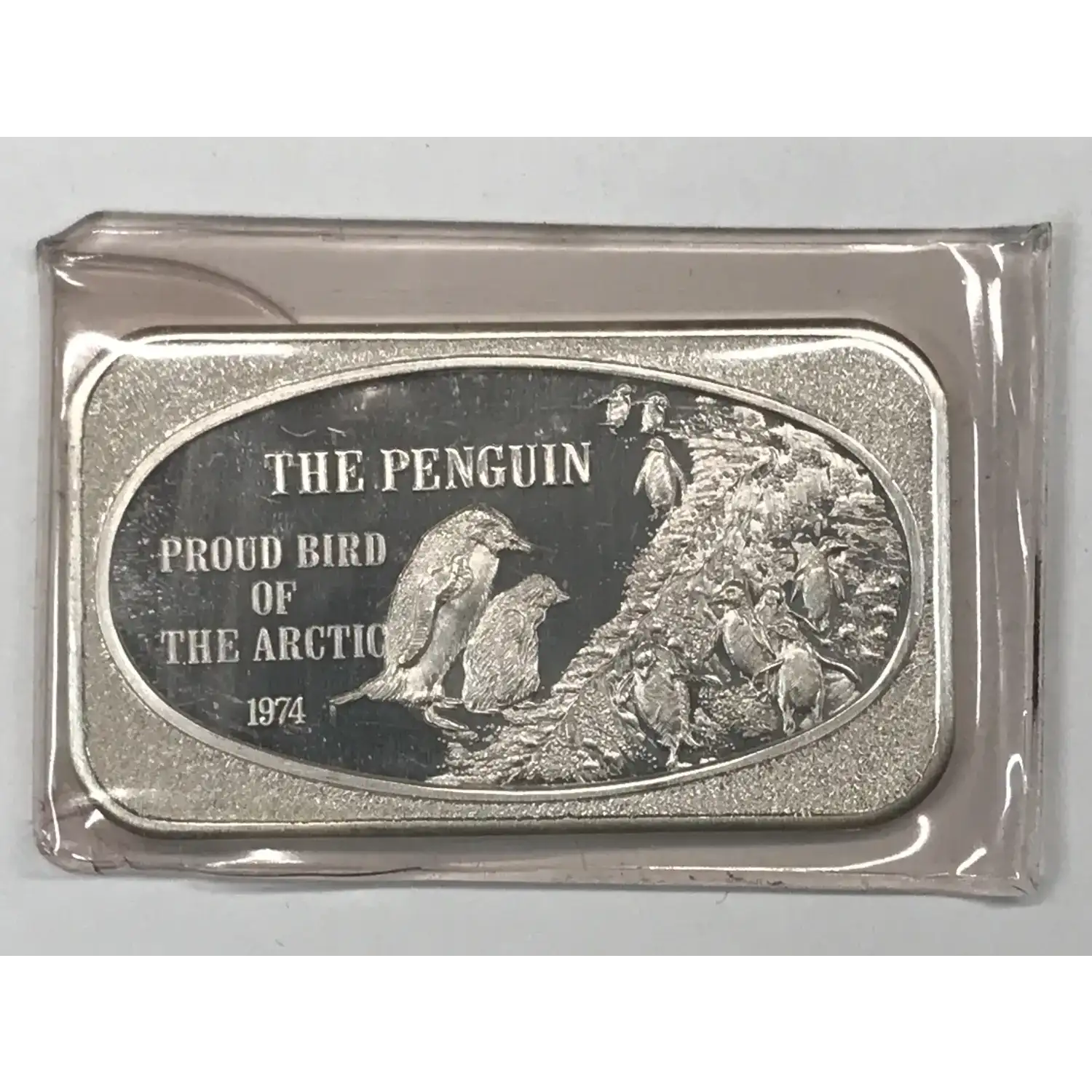 1974 The Penguin Proud Bird of the Arctic 1 oz Silver Art Bar - United States Silver Corporation (USSC) - serial 1928