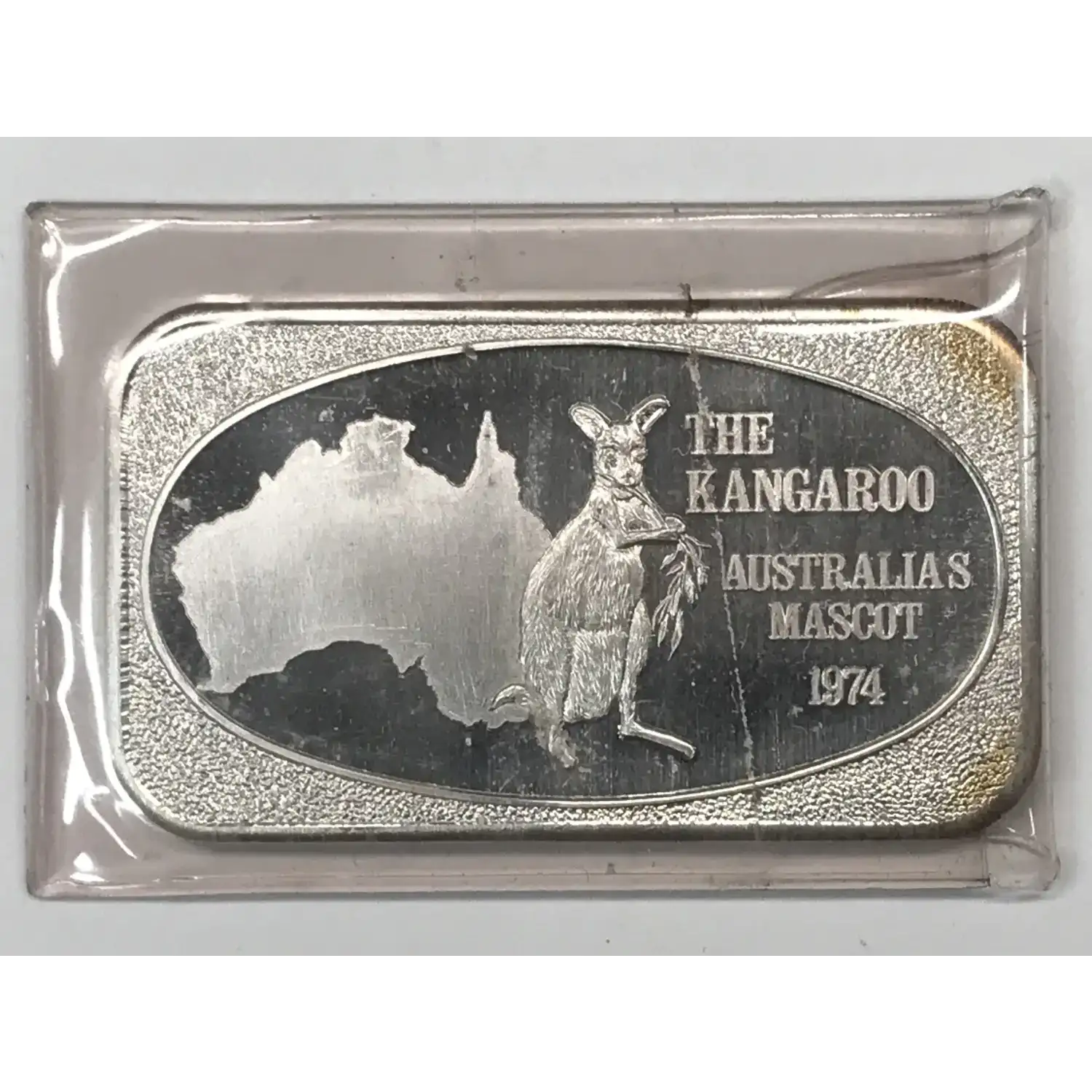 1974 1 oz Silver Bar Kangaroo Australia's Mascot USSC