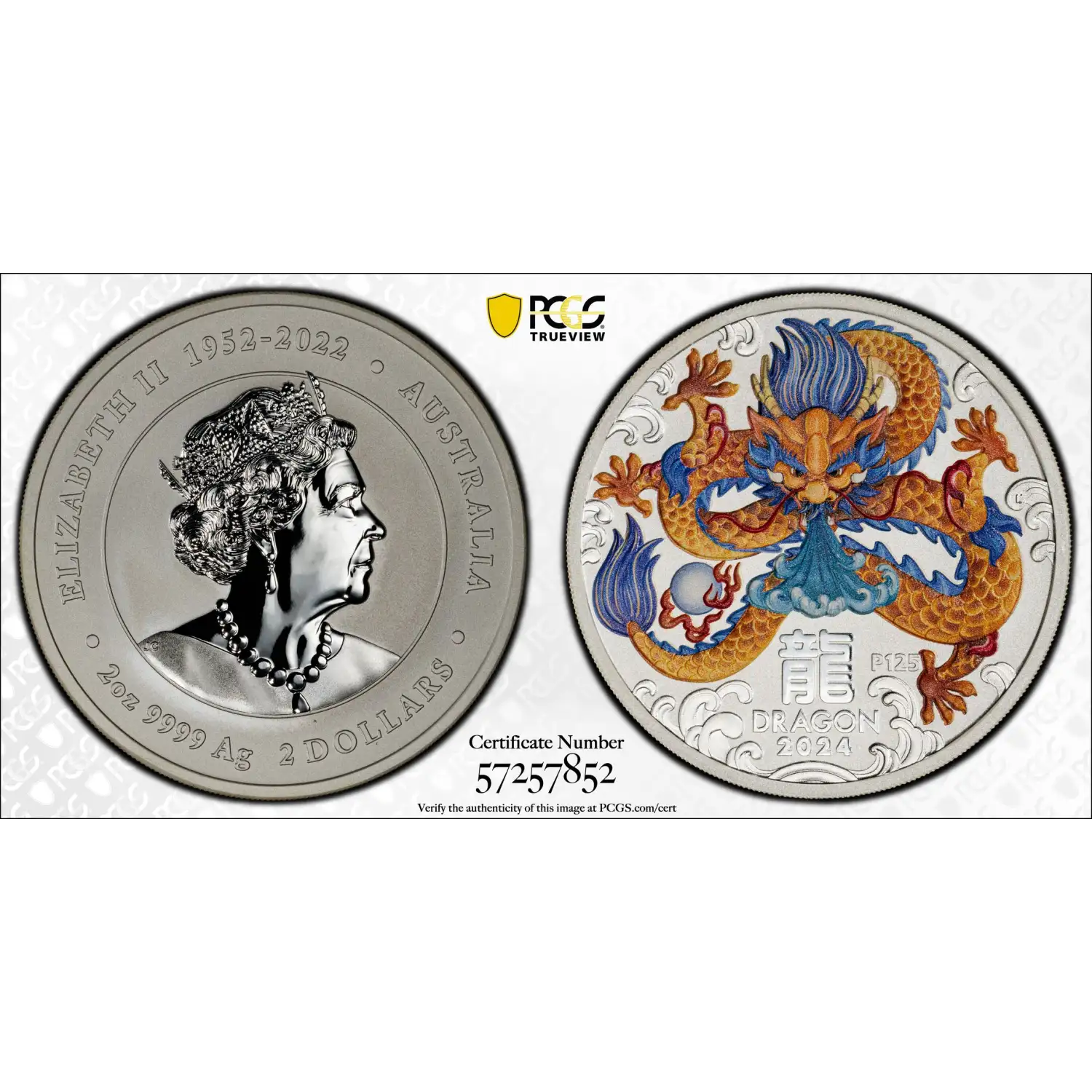 2024 P125 Year of the Dragon Colorized Australia 2 oz Silver $2 PCGS MS-69