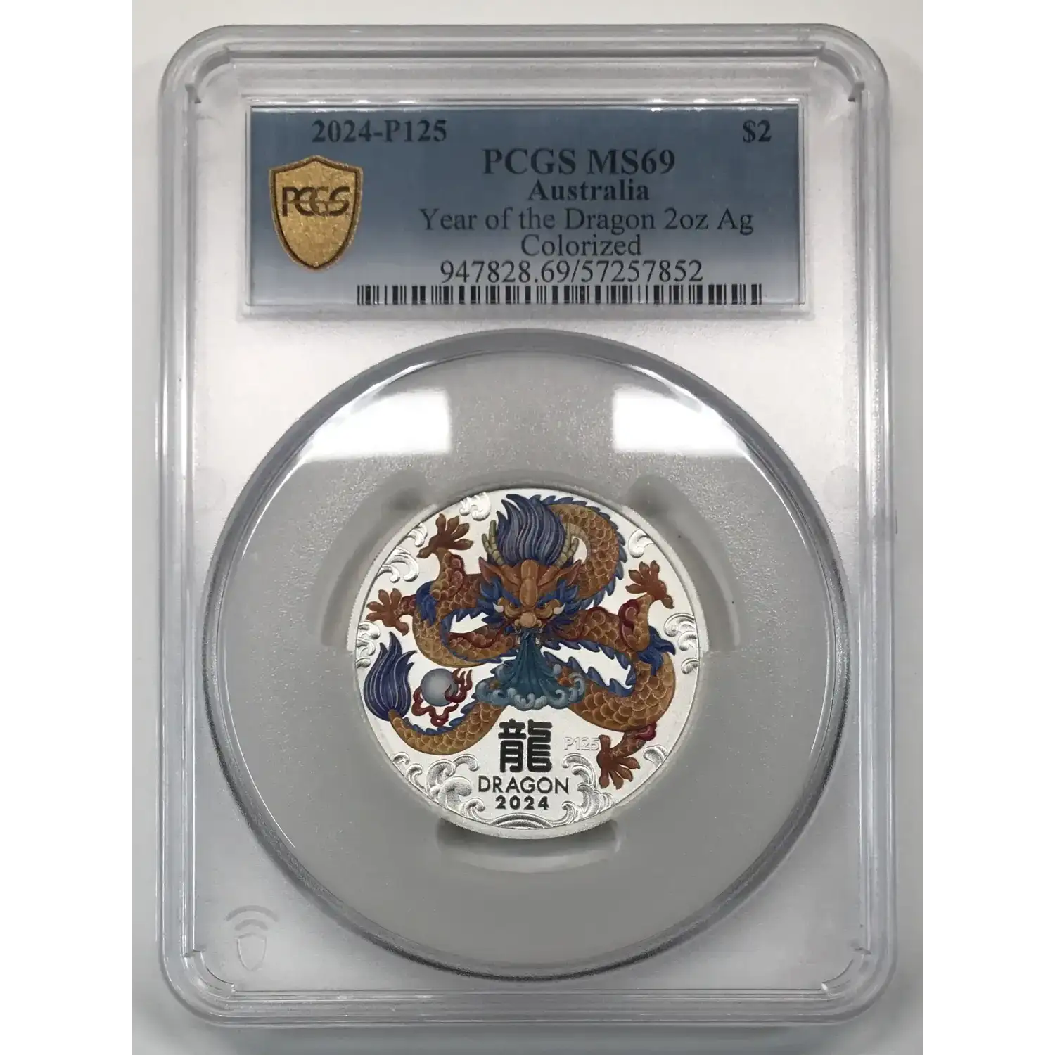2024-P125 2 oz Silver PCGS MS-69 Year of the Dragon Colorized Australia $2