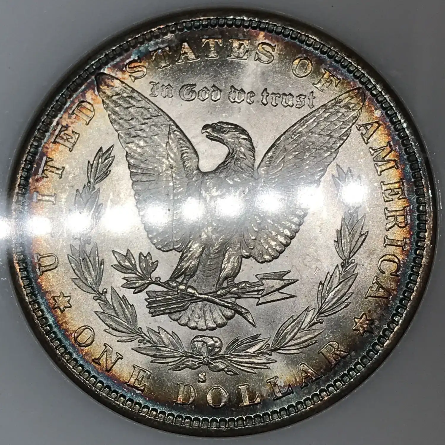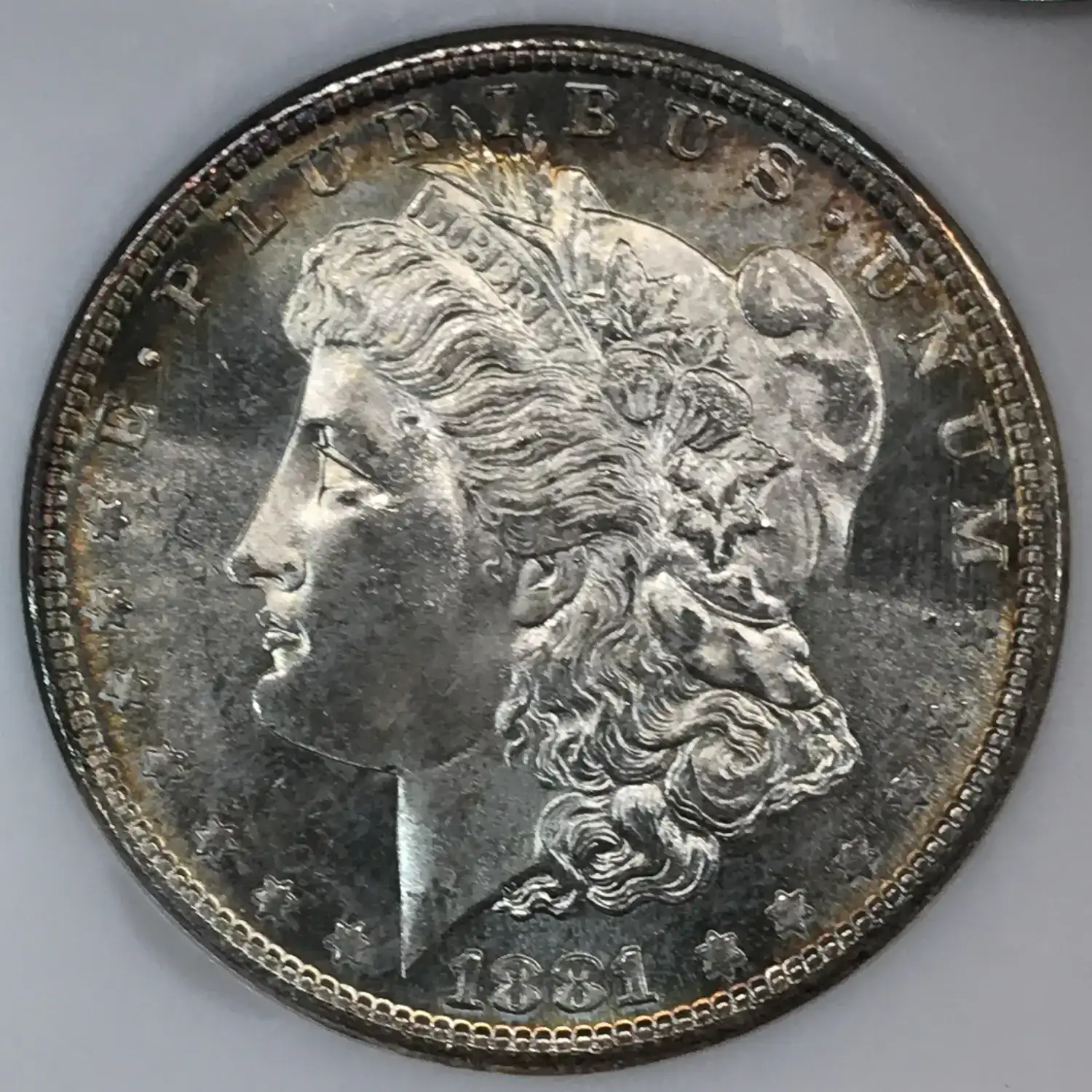 1881‑S Morgan Silver Dollar NGC MS‑65 CAC - Old Fatty Holder - Gentle Rim Rainbow Toning