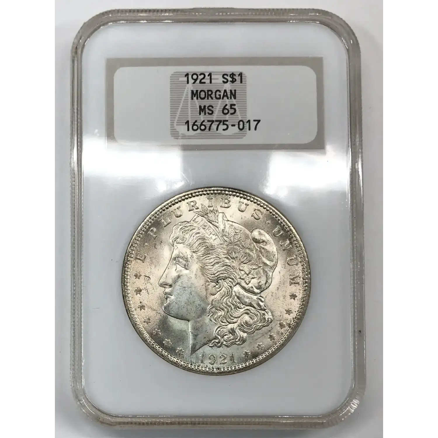 1921 P Morgan Silver Dollar NGC MS-65 - Old Fatty Holder - minor hologram peel