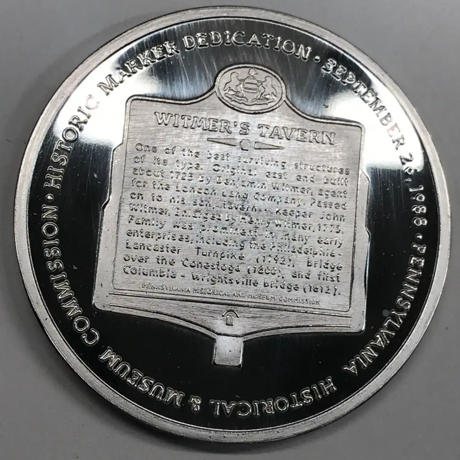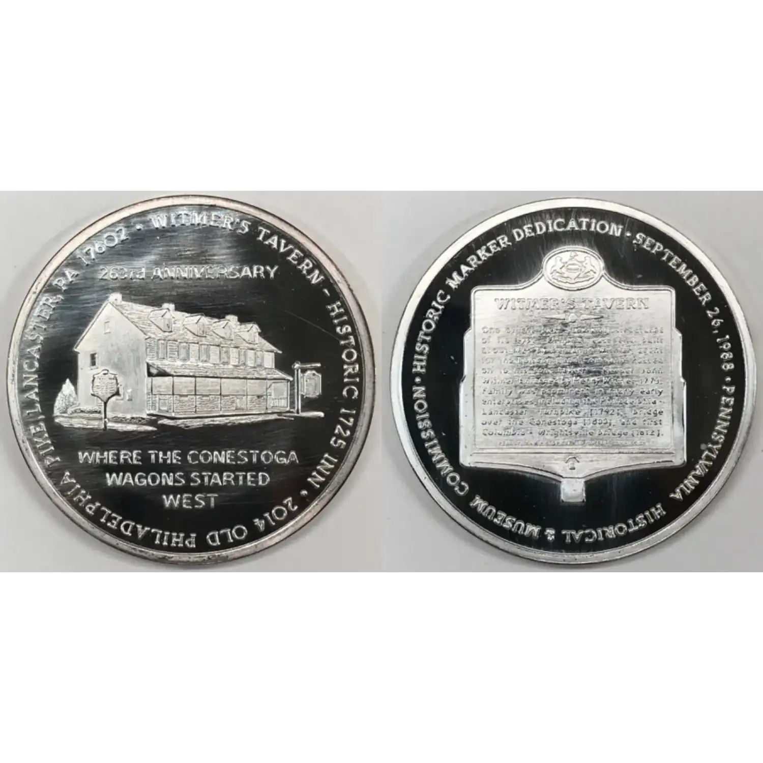 2014 Historic Witmer's Tavern 263rd Ann. Pike, Lancaster, PA 1 oz Silver Round