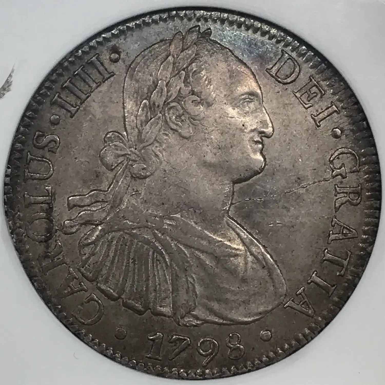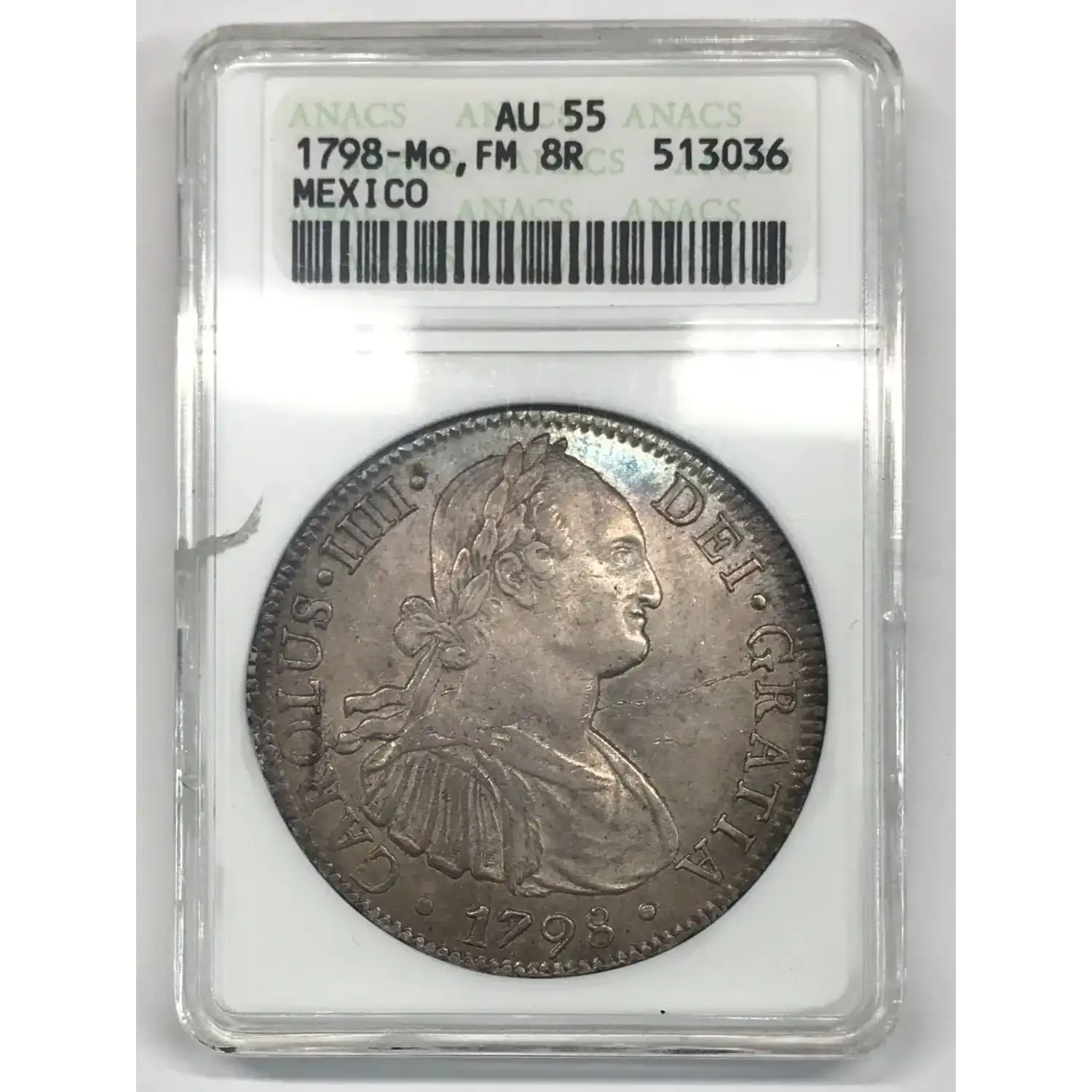 1798 Mo FM MEXICO Silver 8 REALES ANACS AU-55 - Charles IV - KM#109 - old white soapbox holder - note that holder has a crack