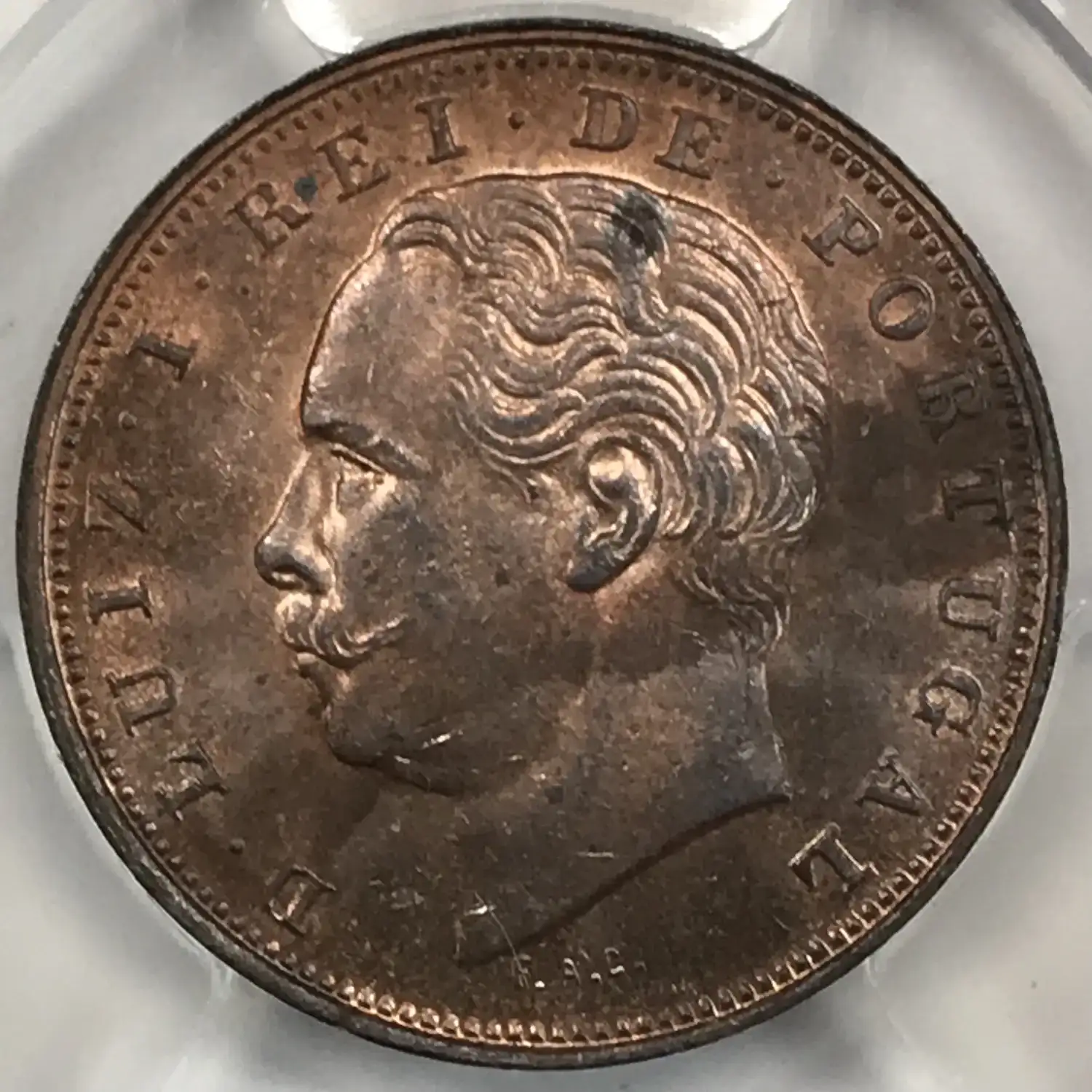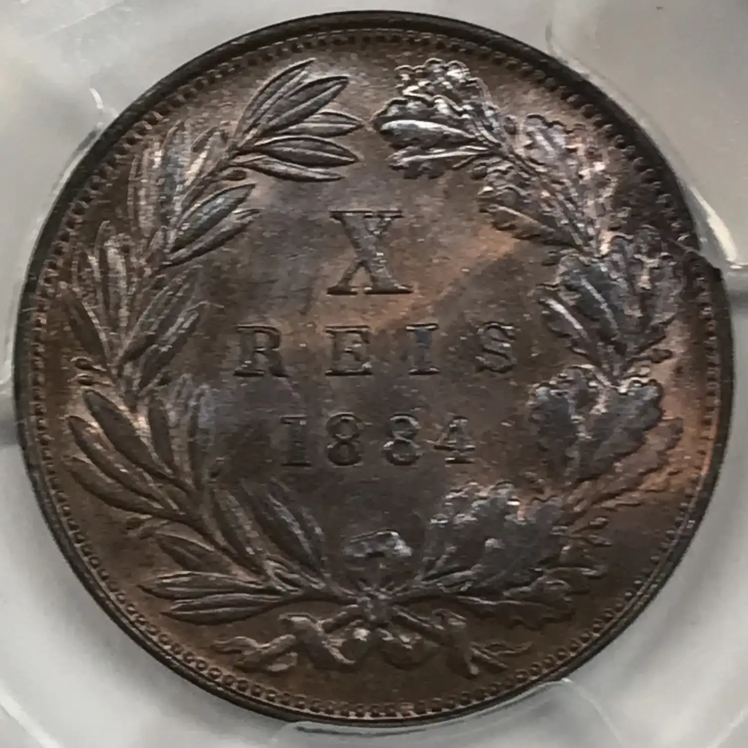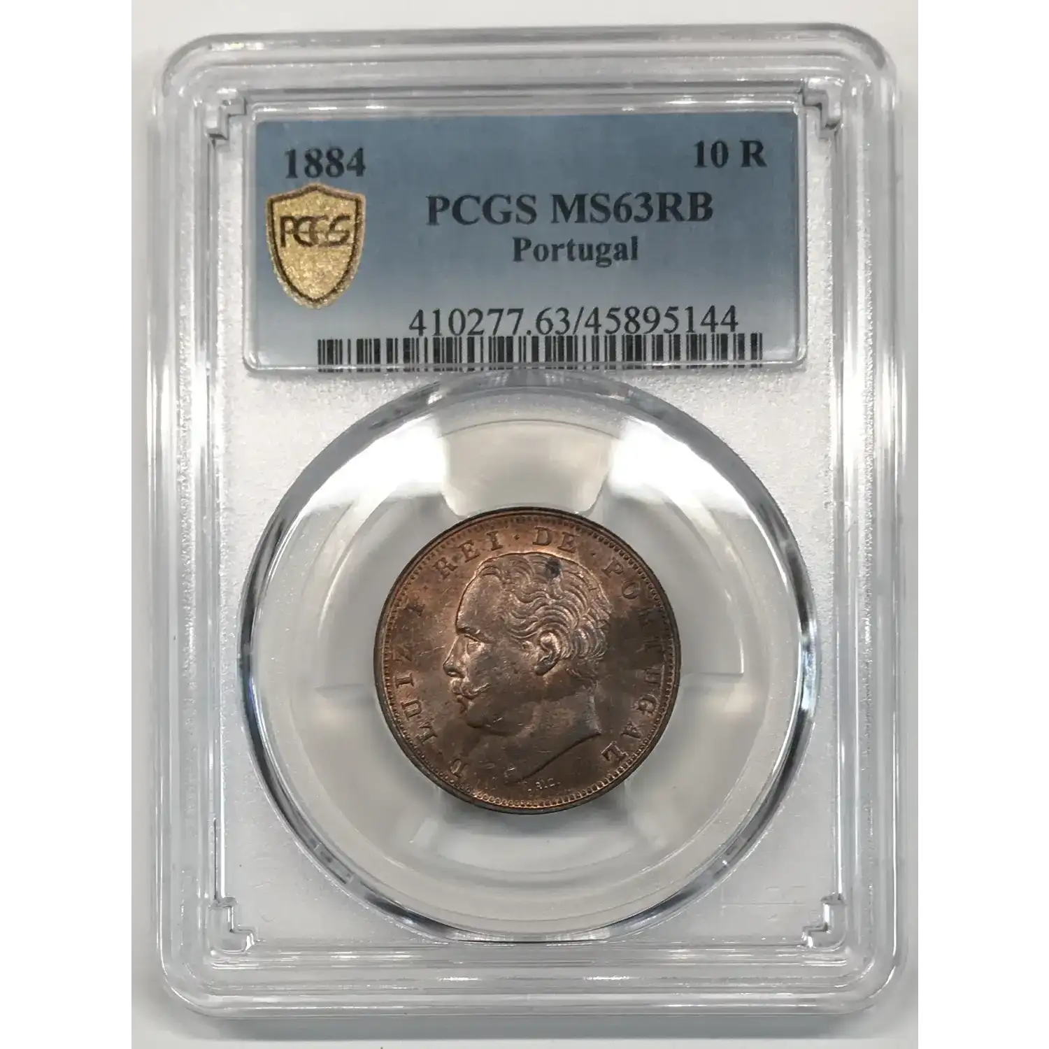 1884 PORTUGAL Bronze 10 REIS PCGS MS-63 RB - Luiz I - Gomes-L1.05.03, KM-526