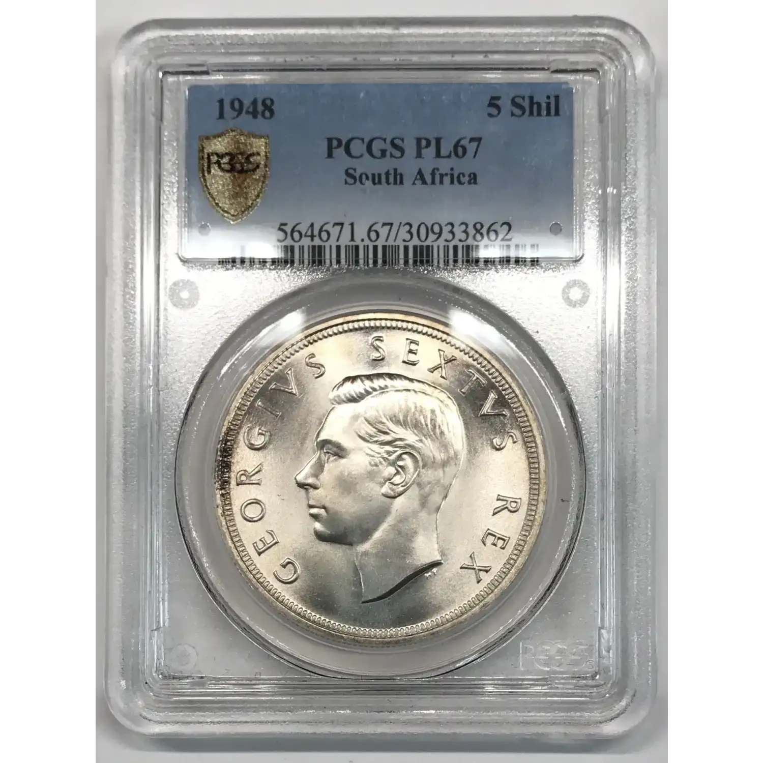 1948 SOUTH AFRICA Silver 5 SHILLINGS PCGS PL-67 - Prooflike / Specially Select (SS)