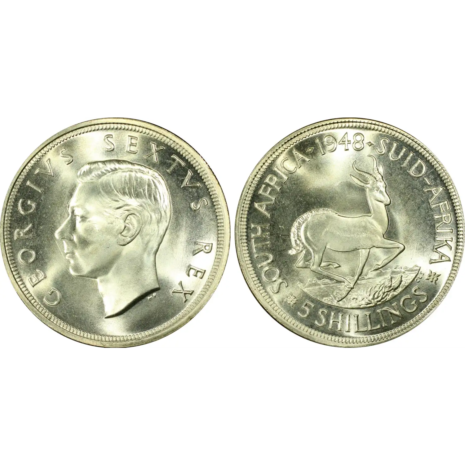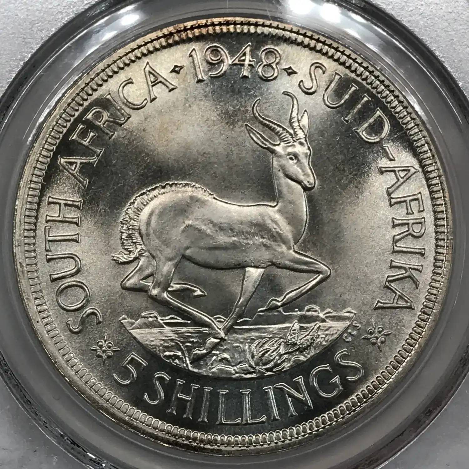 1948 SOUTH AFRICA Silver 5 SHILLINGS PCGS PL-67