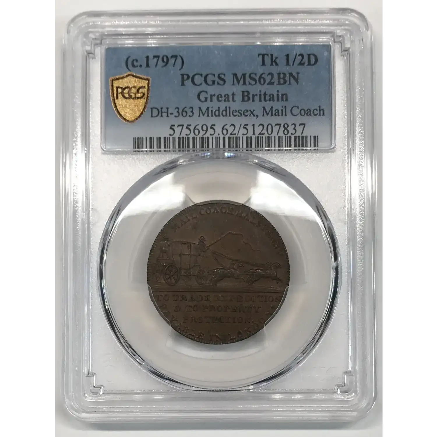 1797 Great Britain Copper Half Penny Conder Token PCGS MS-62 BN - DH-363 Middlesex, Palmer's Mail Coach