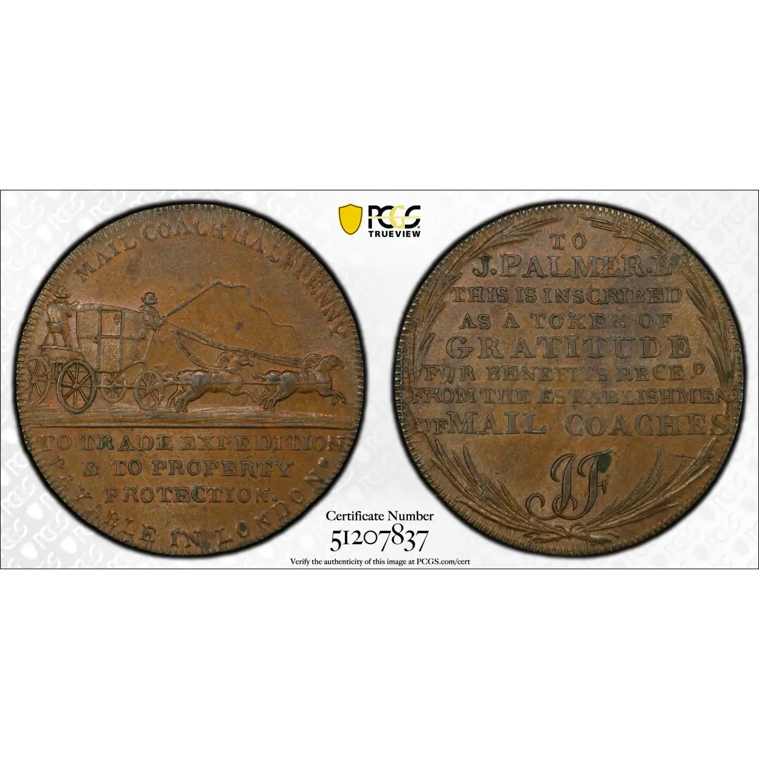 1797 Great Britain Copper Half Penny Conder Token PCGS MS-62 BN DH-363 Middlesex, Palmer's Mail Coach