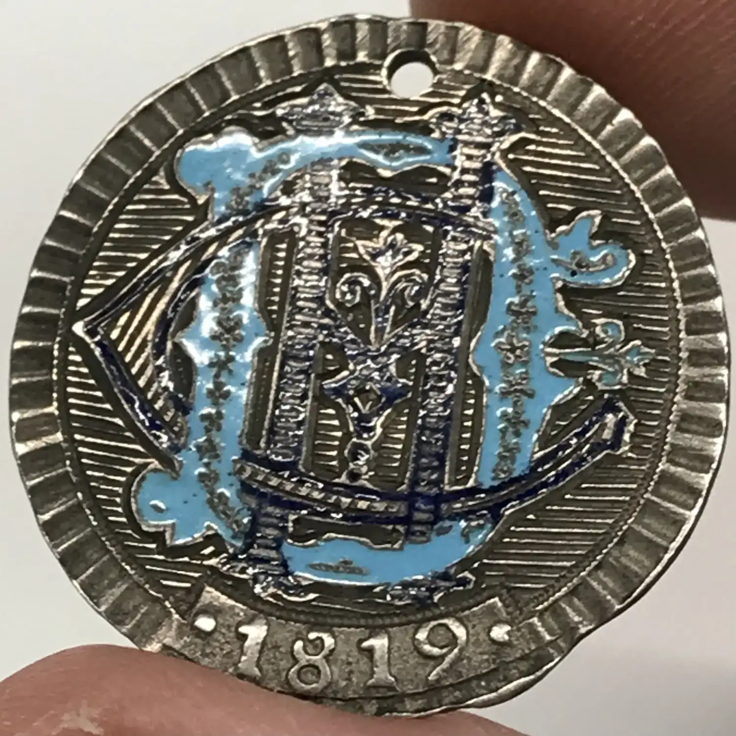 1819 COLOMBIA Silver 2 REALES Enamel Engraved Love Token Pendant/Charm