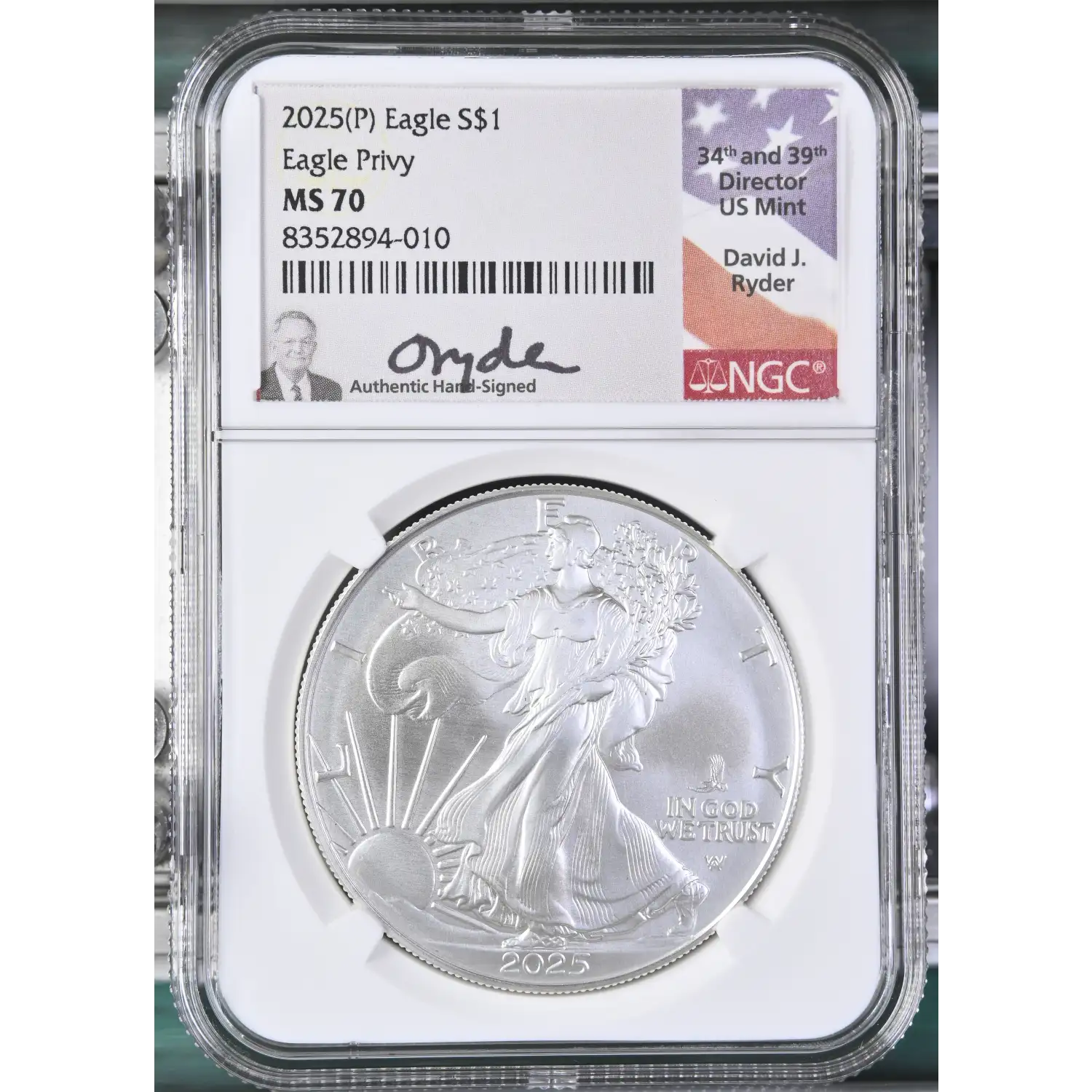 2025 (P) Eagle Privy Mark Silver Eagle NGC MS70 - US Mint Director David J Ryder Signature Label