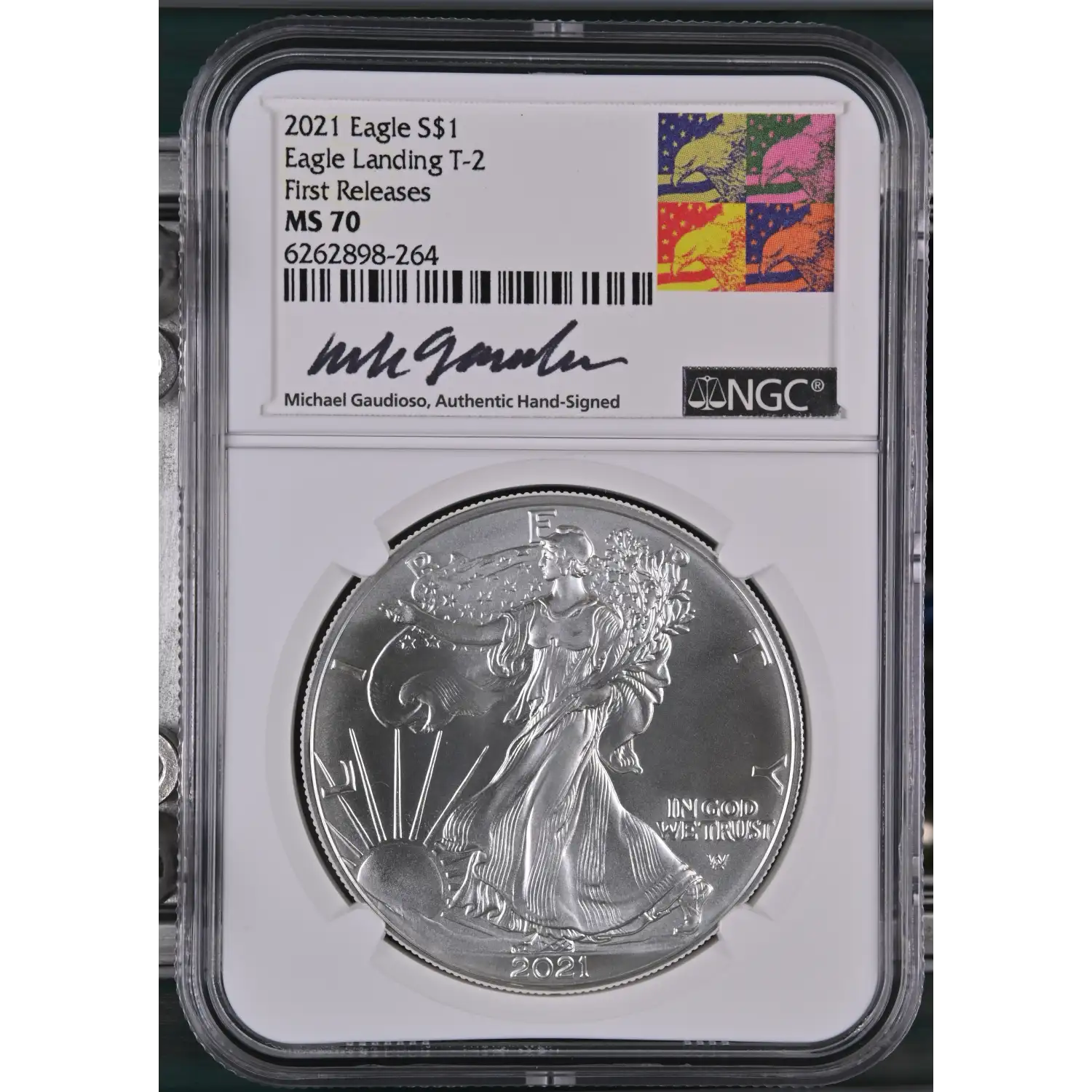 2021 Silver Eagle NGC MS-70 Eagle Landing T-2 First Releases Gaudioso