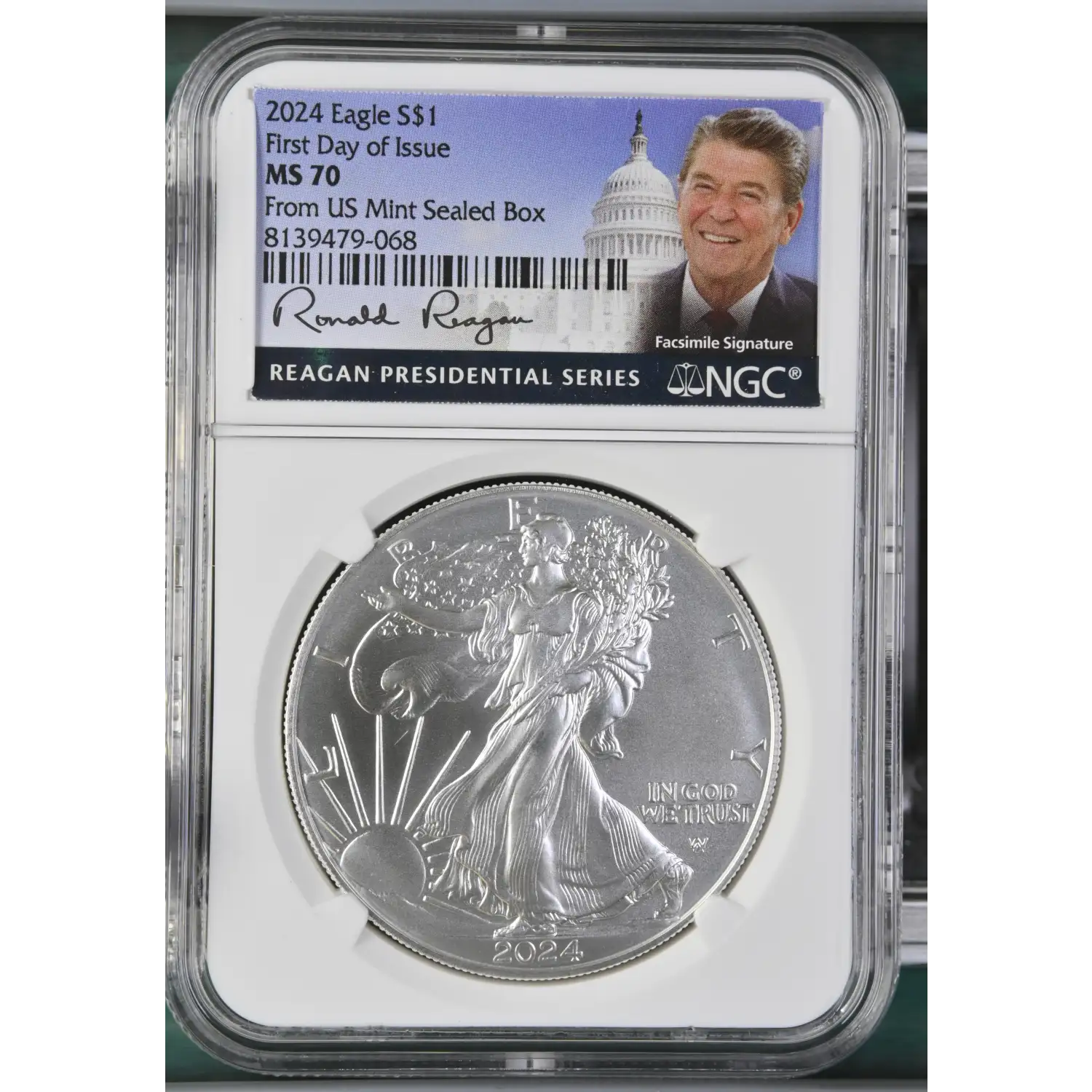 2024 Silver Eagle NGC MS-70 First Day of Issue US Mint Sealed Box Reagan Cabral