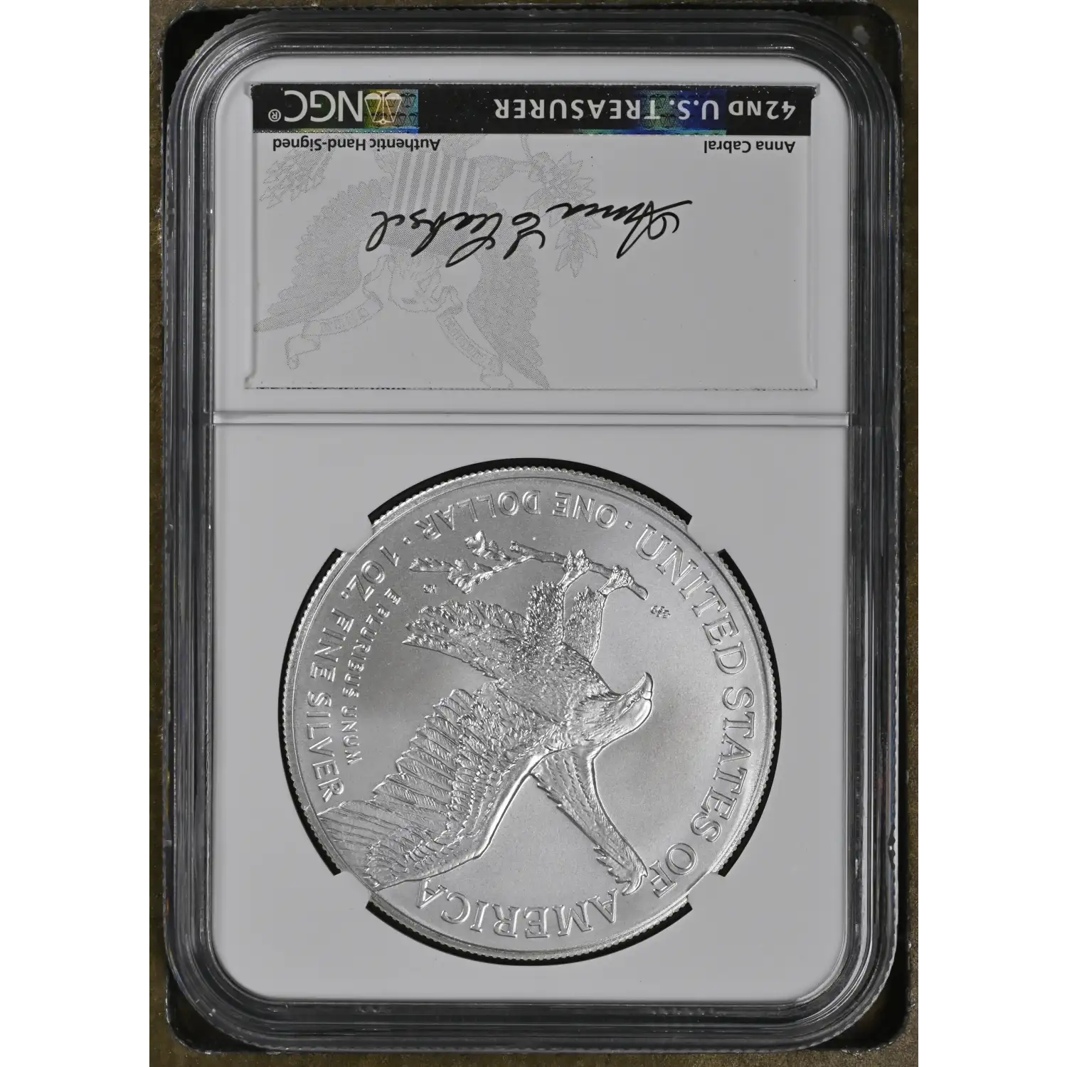 42nd U.S. Treasurer Anna Cabral Authentic Hand-Signed Signature Label (back of slab)