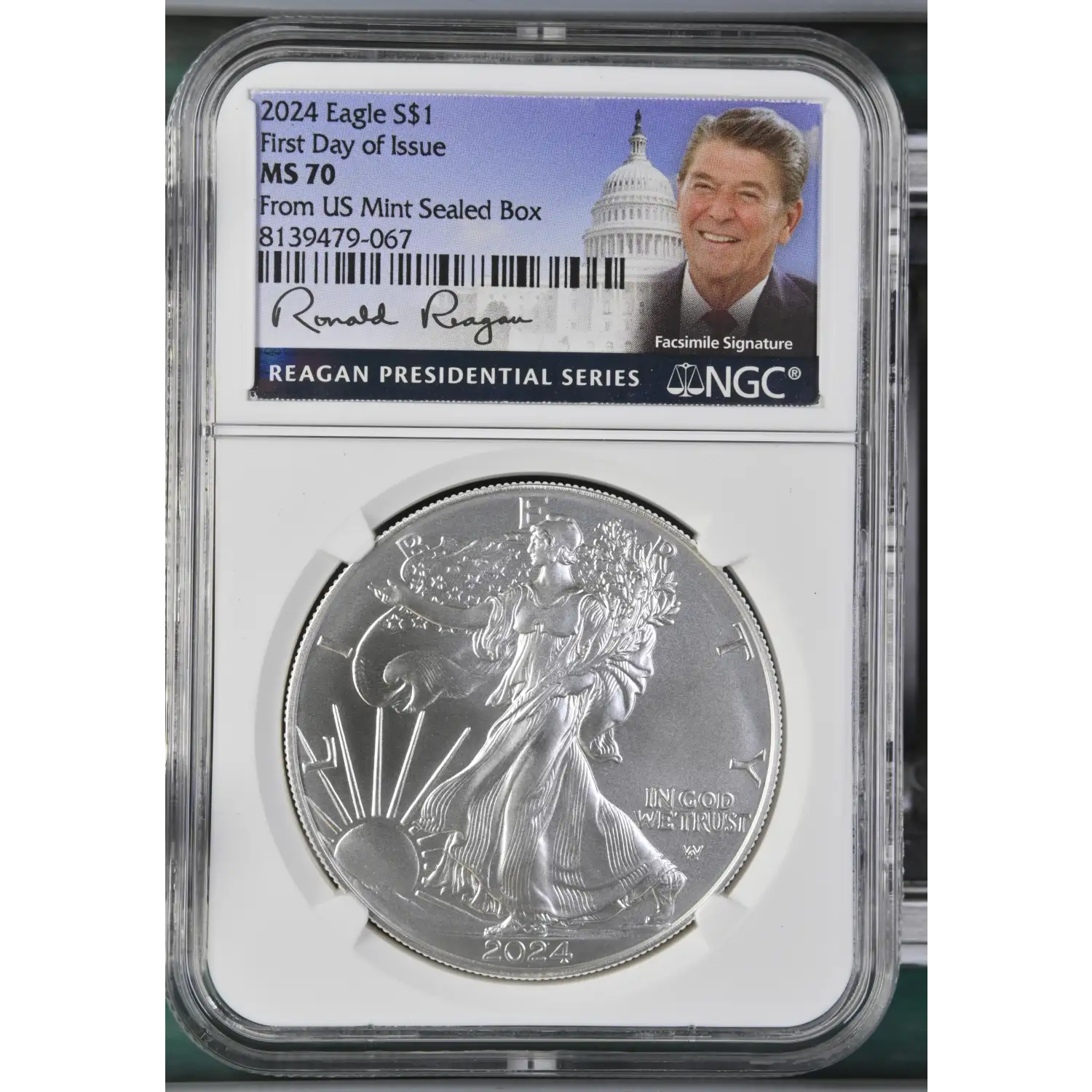 2024 Silver Eagle NGC MS-70 First Day of Issue US Mint Sealed Box Reagan Cabral