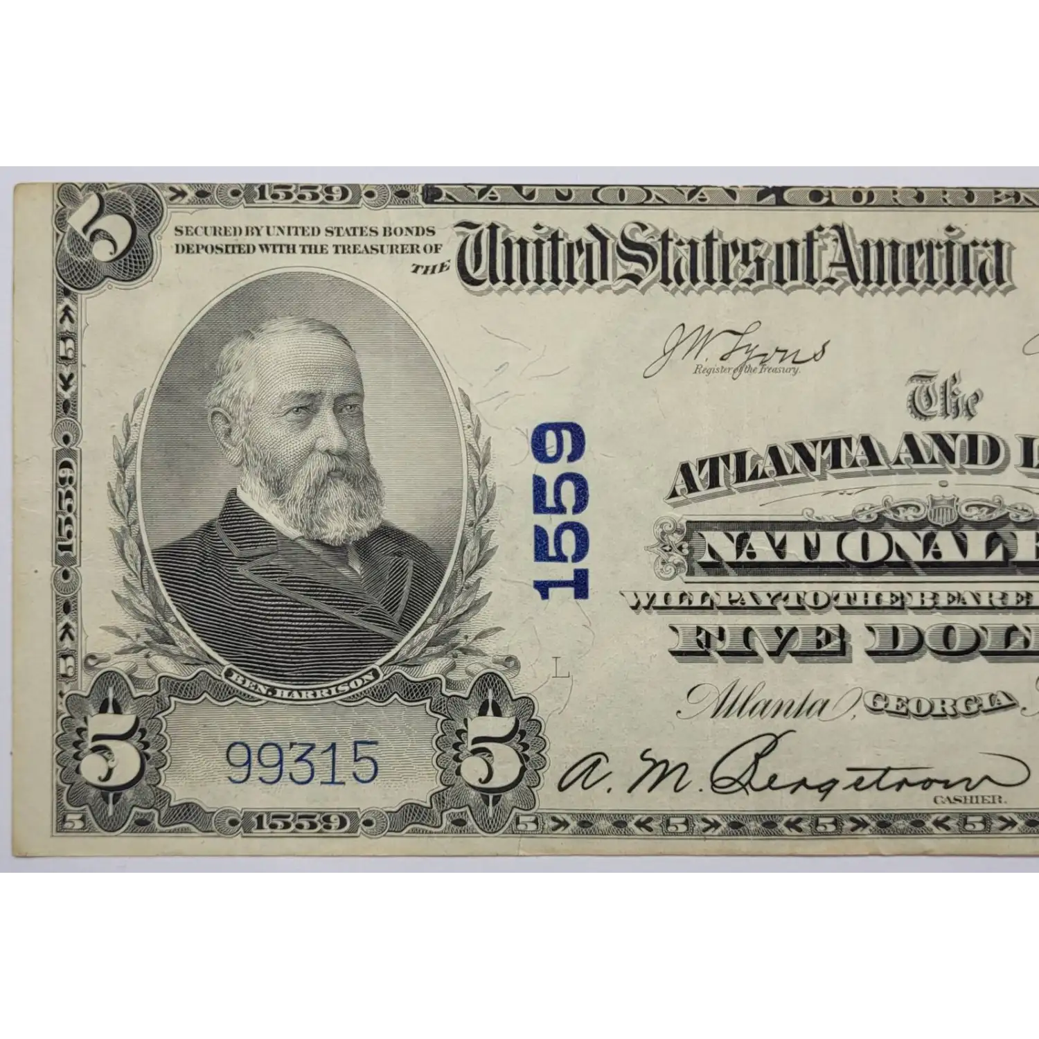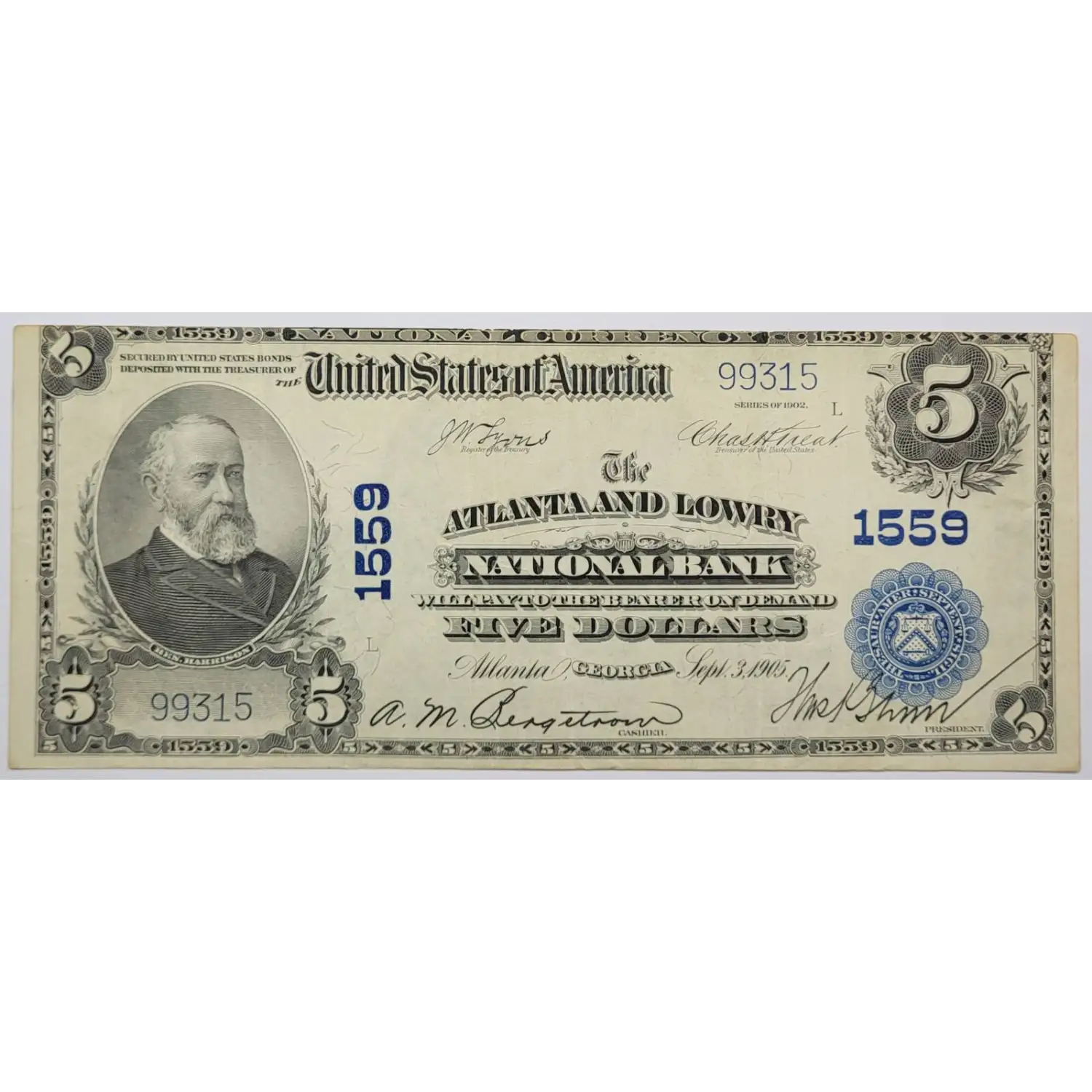 1902 $5 National Georgia (Atlanta & Lowry) Currency Note 1559
