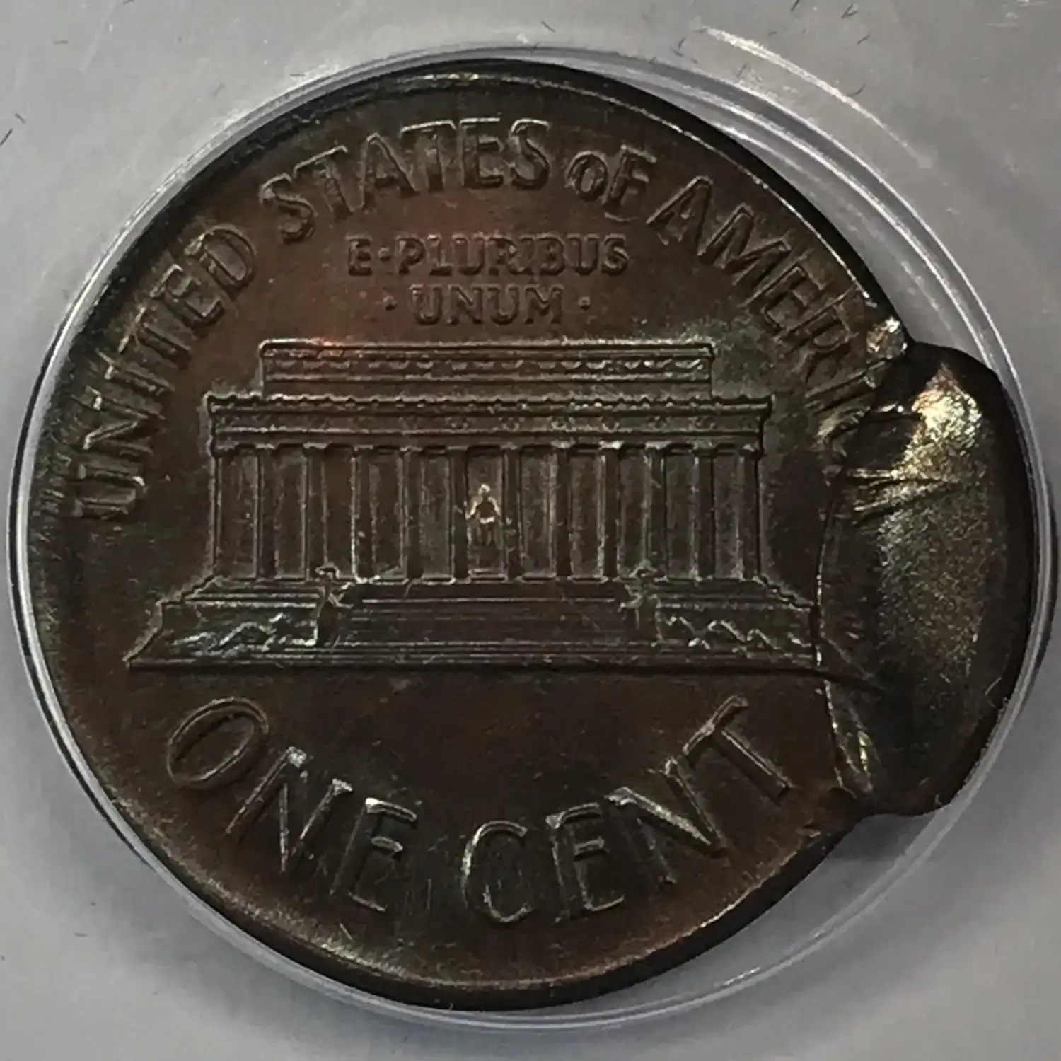 1974-D Lincoln Memorial Cent ANACS MS-63 RB MINT ERROR DOUBLE STRUCK 2ND STRIKE 90% OFF CENTER UNIFACE *Rainbow Toning*